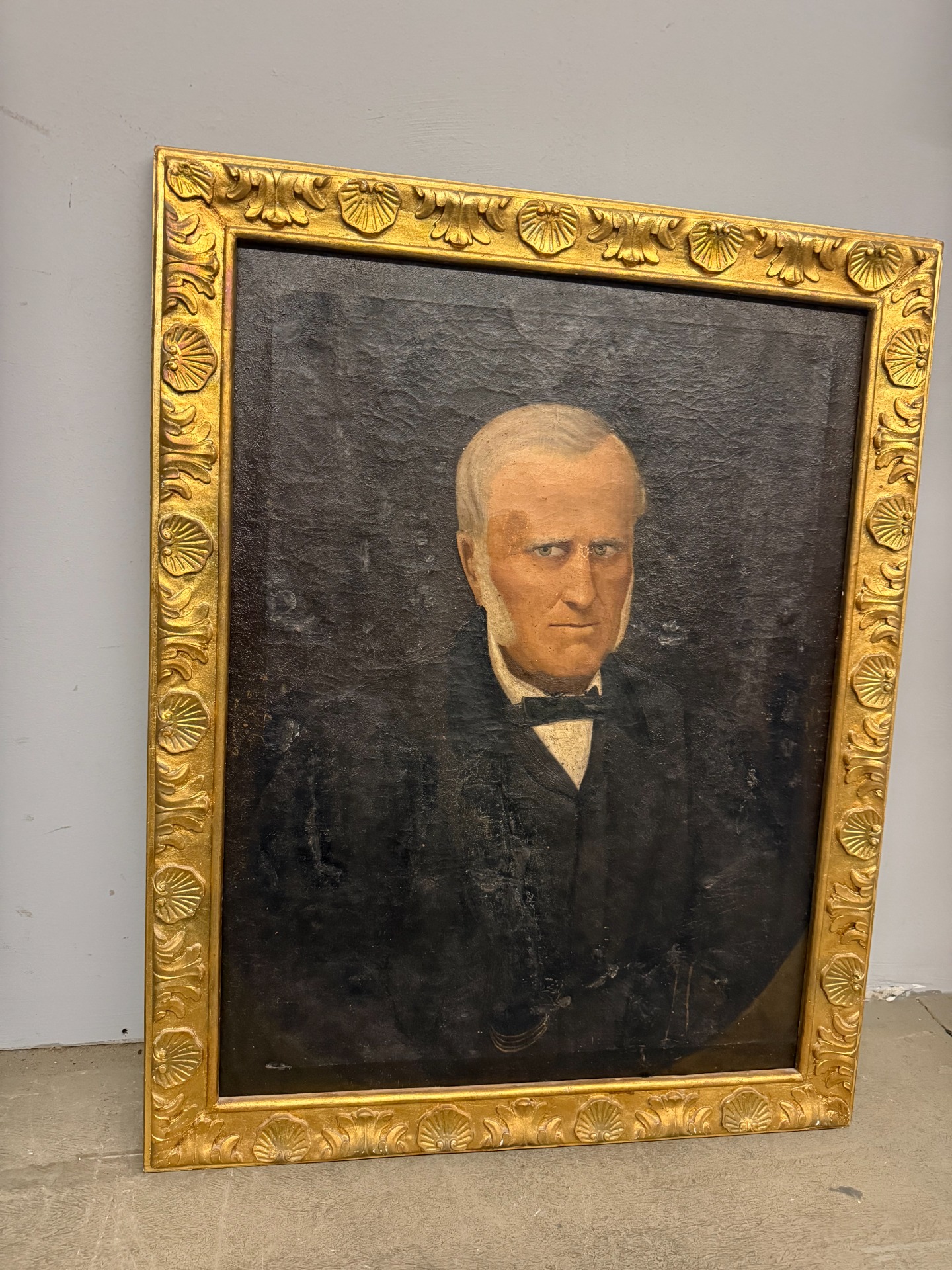 Antique 19th century oil on canvas painting of a noble figure in a gilded frame, 90x71cm