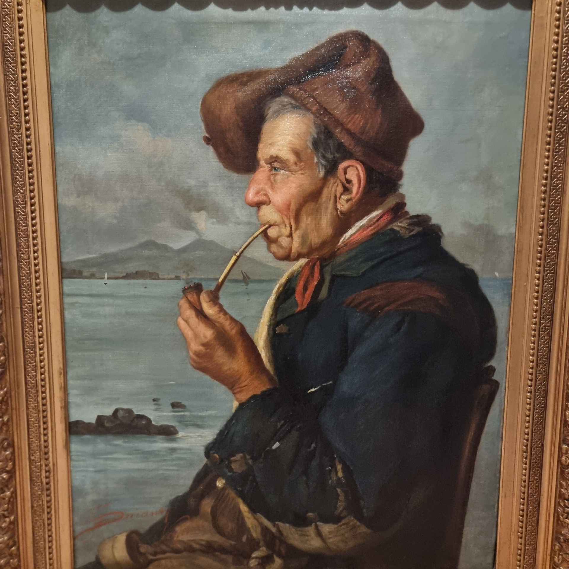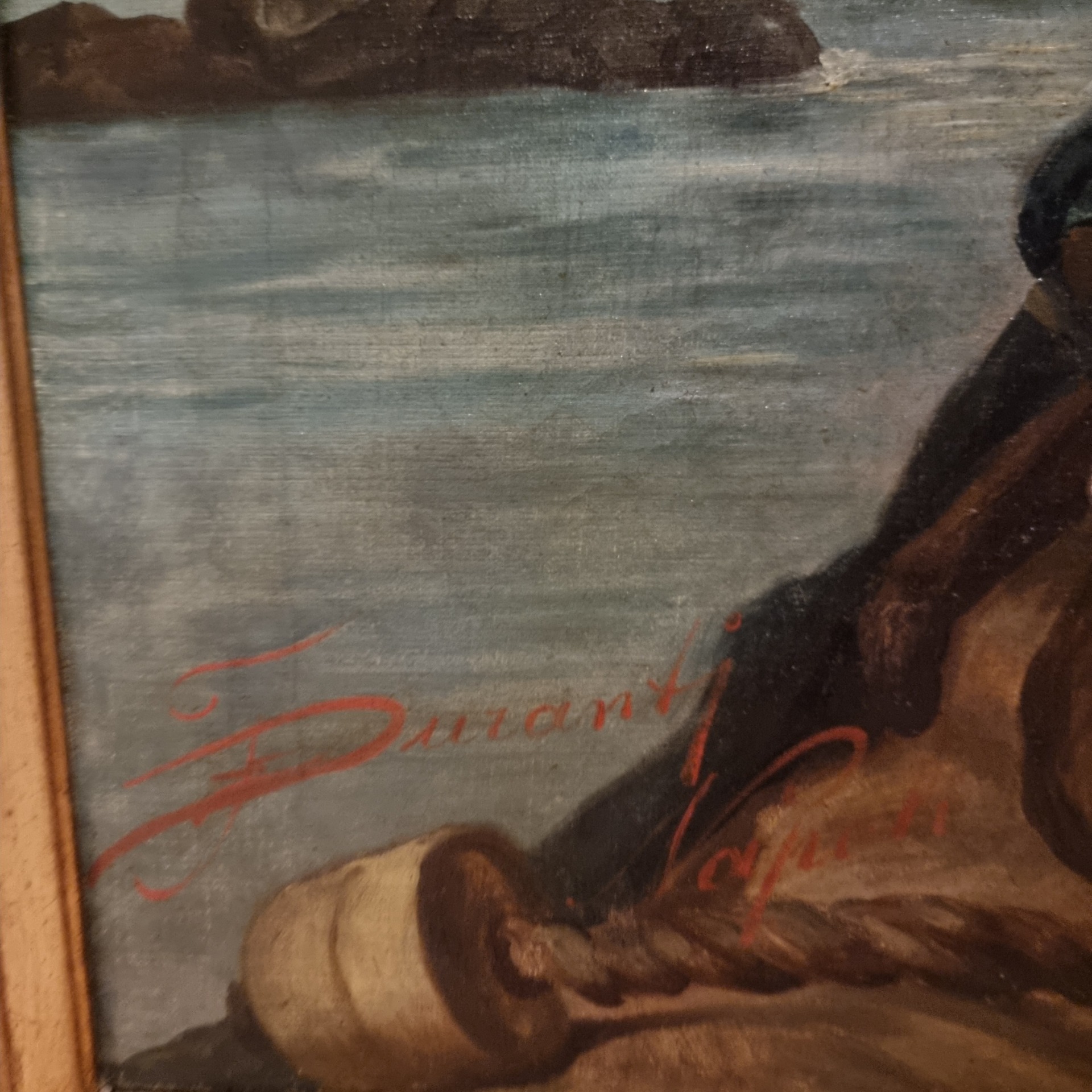 The work "Neapolitan Fisherman" is an oil on canvas from the nineteenth century signed Duranti, a master recognized for his ability to immortalize the popular soul of Southern Italy. The pictorial quality and the finesse of details make this painting an excellent example of nineteenth-century Neapolitan figurative art.