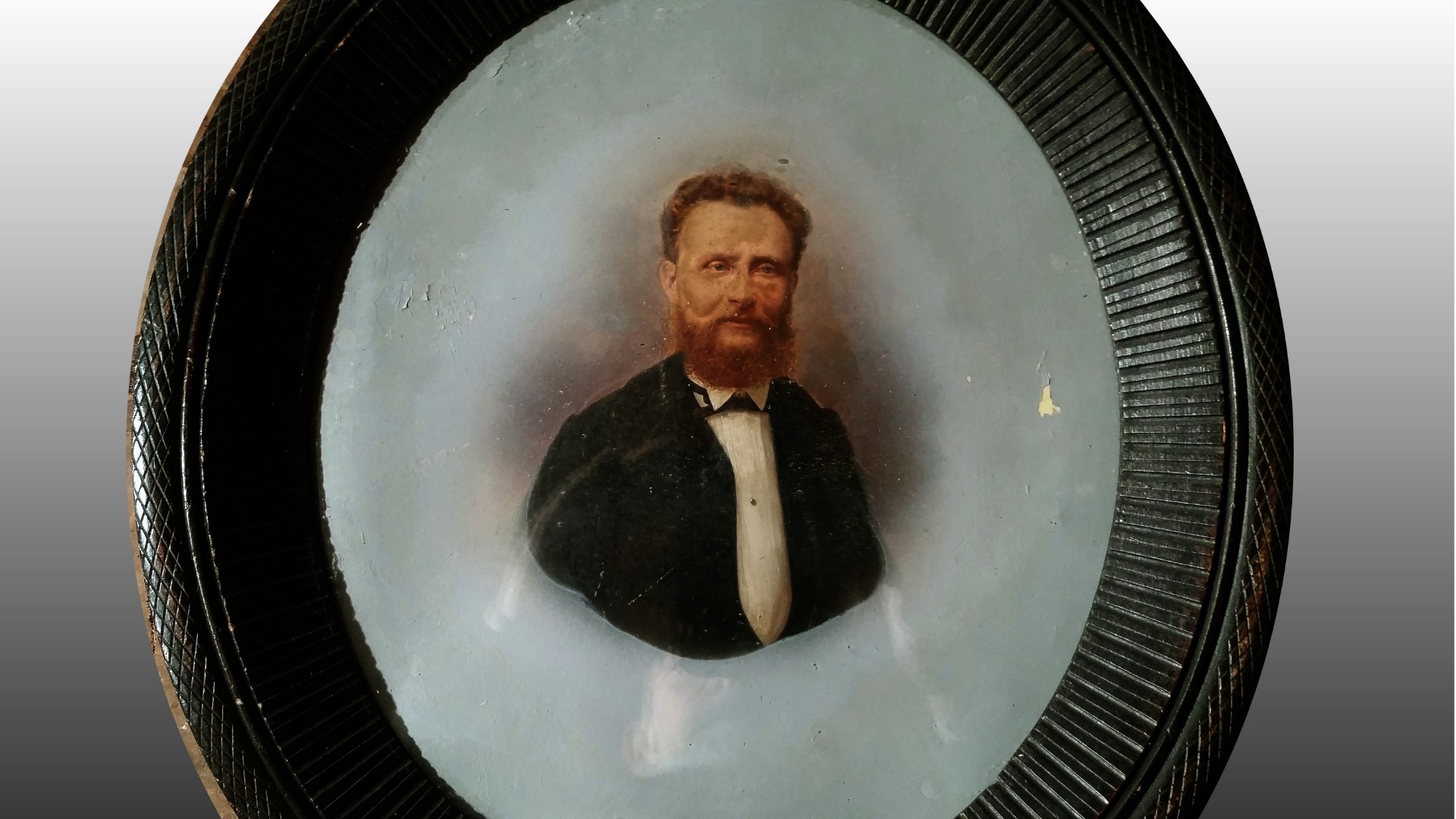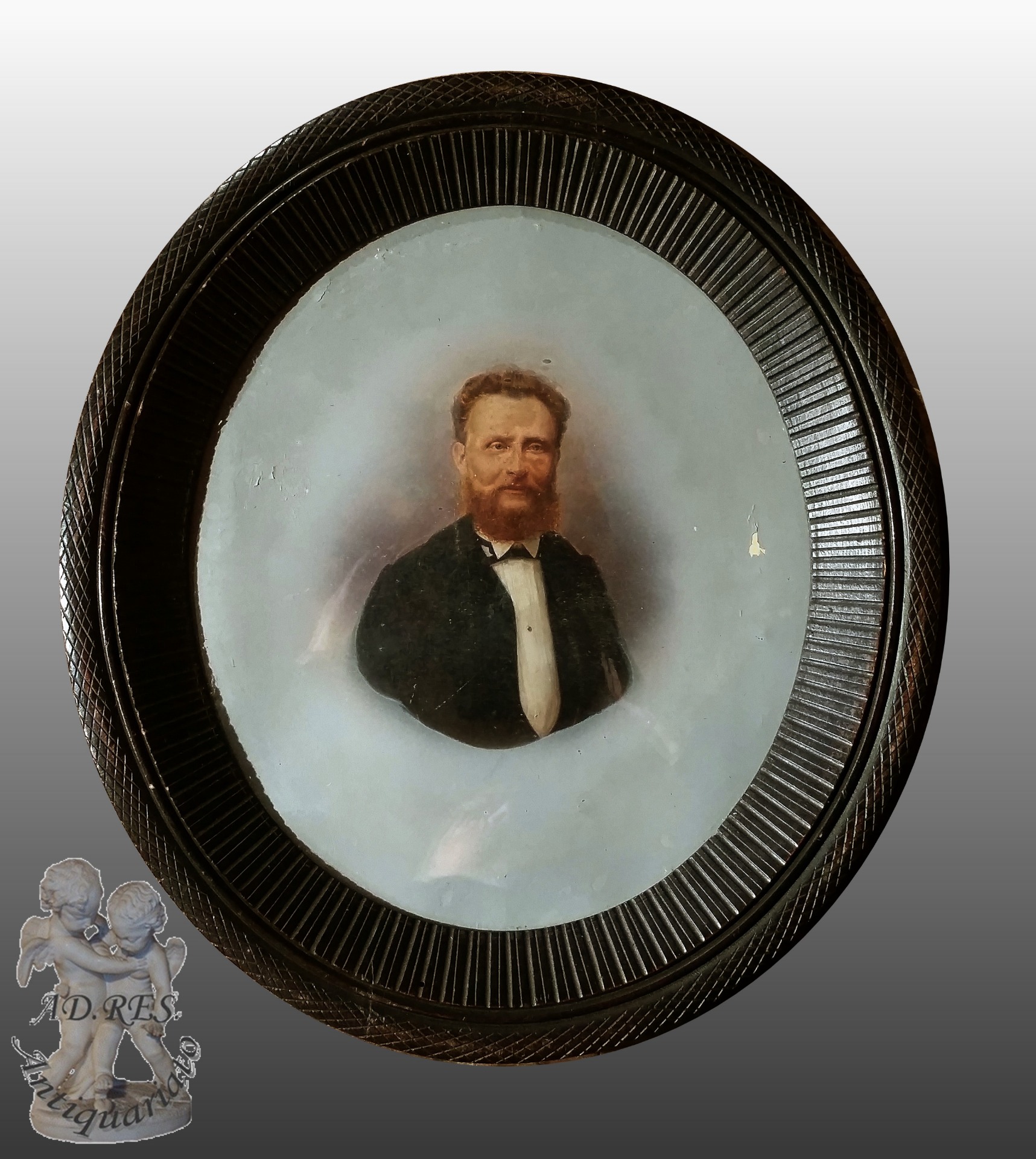 Oil painting on oval cardboard depicting a portrait of a nobleman.Excellent pictorial quality.