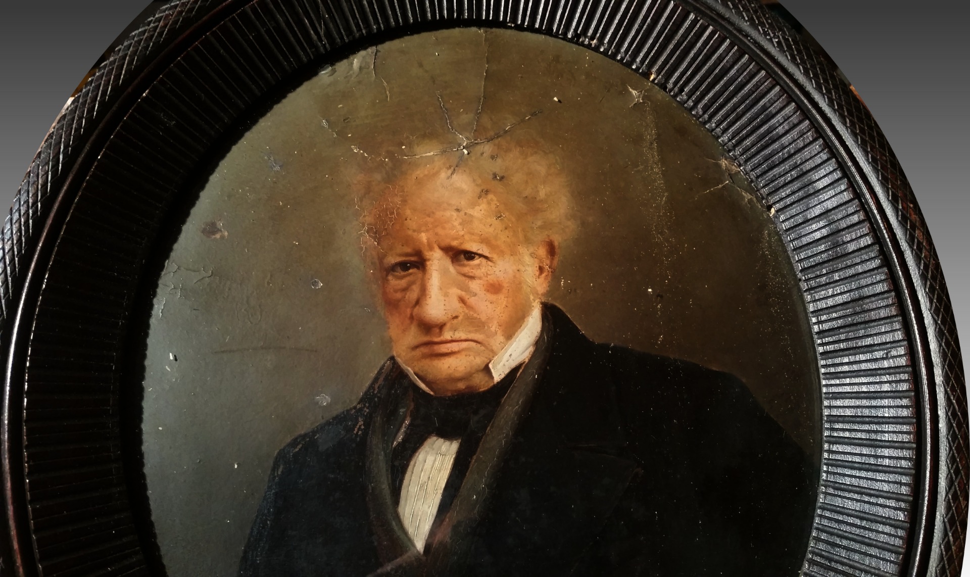 Oil painting on oval cardboard depicting a portrait of a nobleman.Excellent pictorial quality.