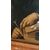 Questo splendido dipinto ad olio su tela, di stile Neorinascimentale, rappresenta un giovane uomo fiorentino dell'epoca rinascimentale. La sua fattura ricorda da vicino le opere di Franciabigio (Francesco di Cristofano), un noto pittore rinascimentale. Il soggetto è ritratto mentre si dedica all'arte della scrittura, indossando abiti tipici del 1500 fiorentino, compresi cappello, toga e girocollo. Il suo sguardo sereno, curato in ogni dettaglio, evidenzia la maestria dell'artista. In primo piano si osserva uno scrittoio, sul quale si intravedono un libro, fogli di carta con annotazioni, e porta inchiostri, mentre il giovane tiene tra le mani una penna pronta per scrivere. Un elemento di particolare rilievo è inoltre l'anello esagonale che indossa, sulla cui pietra si riflette un senso di eleganza e lignaggio. Sullo sfondo infine, si intravede la campagna fiorentina, caratterizzata da colli e alberi. Il quadro è racchiuso in un'elegante cornice in legno laccato, decorata con motivi vegetali in perfetto stile rinascimentale. L'opera è attribuita al pittore tedesco Gustav Schrödter, la cui firma è visibile sul fondo del lato sinistro, e risale alla seconda metà del XIX secolo.