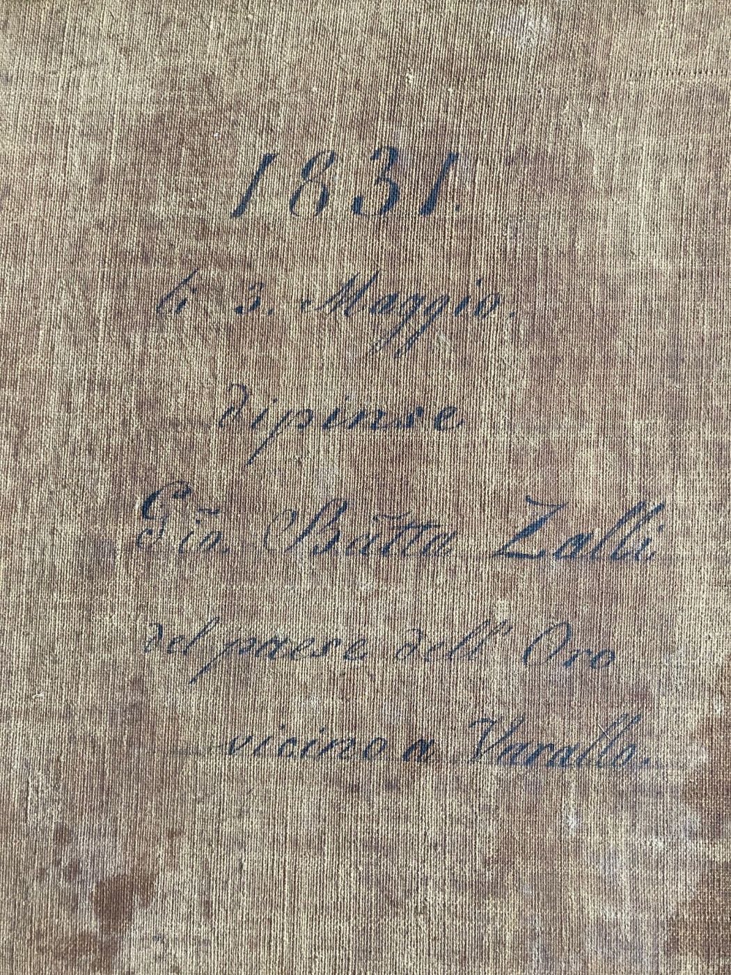 On the back of the male portrait, the inscription: “1831 on May 3rd painted by Gio.Batta.Zalli in the paese dell’Oro near Varallo”.