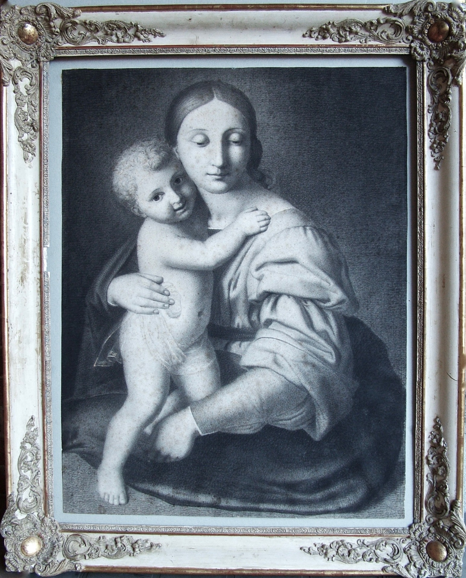 Preparatory study by the painter from Bergamo, Luigi Trécourt, for the creation of the oil on canvas painting depicting the Madonna with Child, painted around 1860 and preserved at the Accademia Carrara in Bergamo.