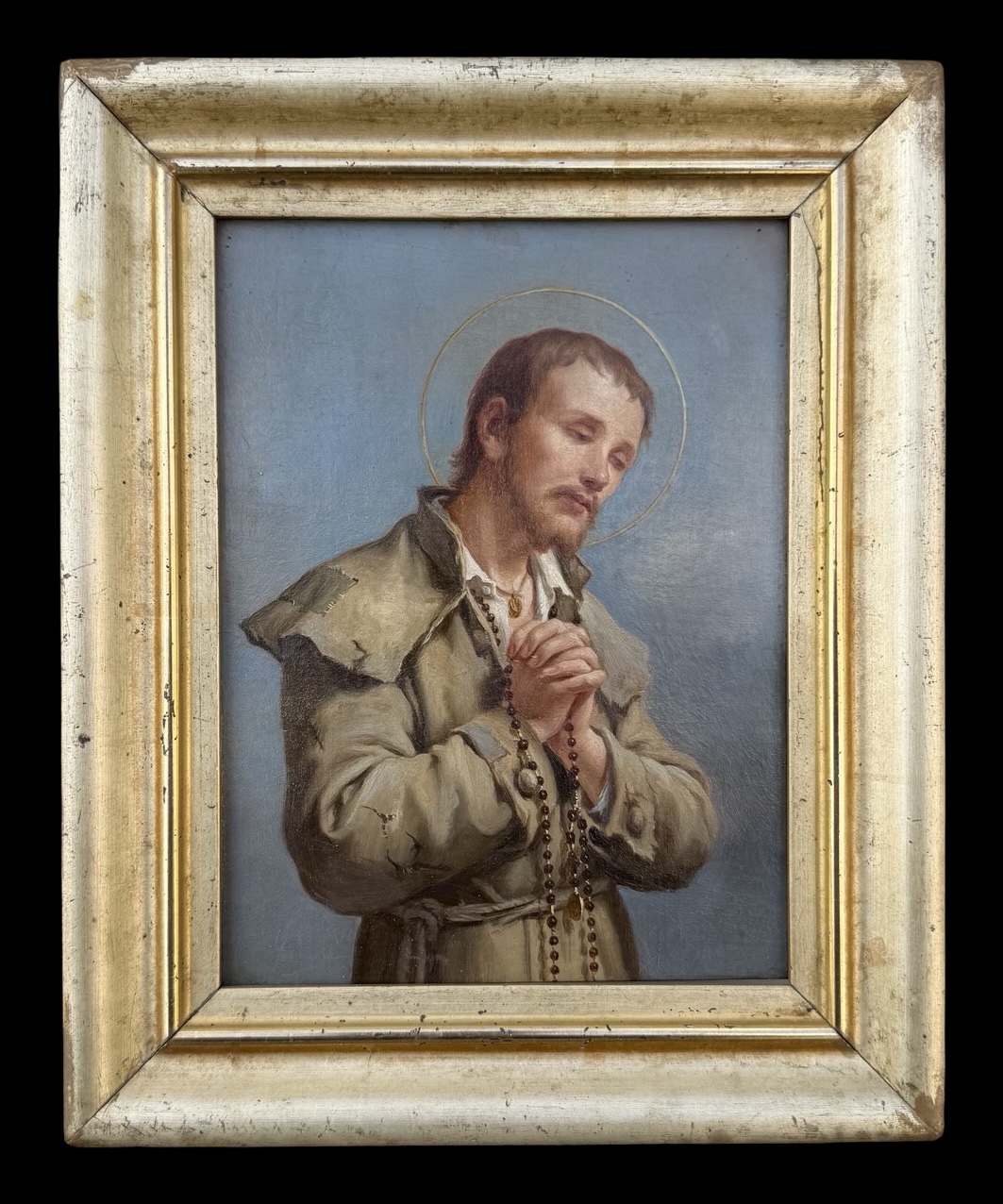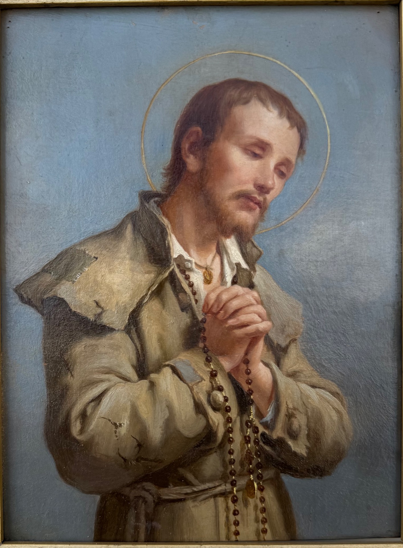 Oil painting on panel depicting Saint Benedict Joseph Labre.