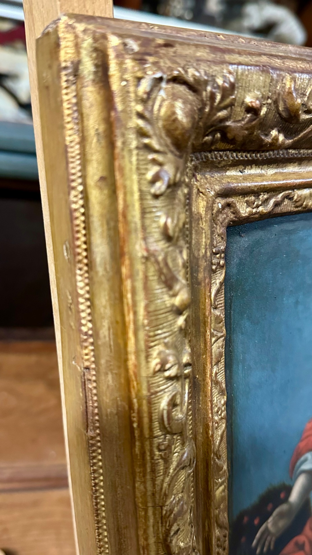 The gilded frame, richly sculpted, is coeval and further enhances the composition.