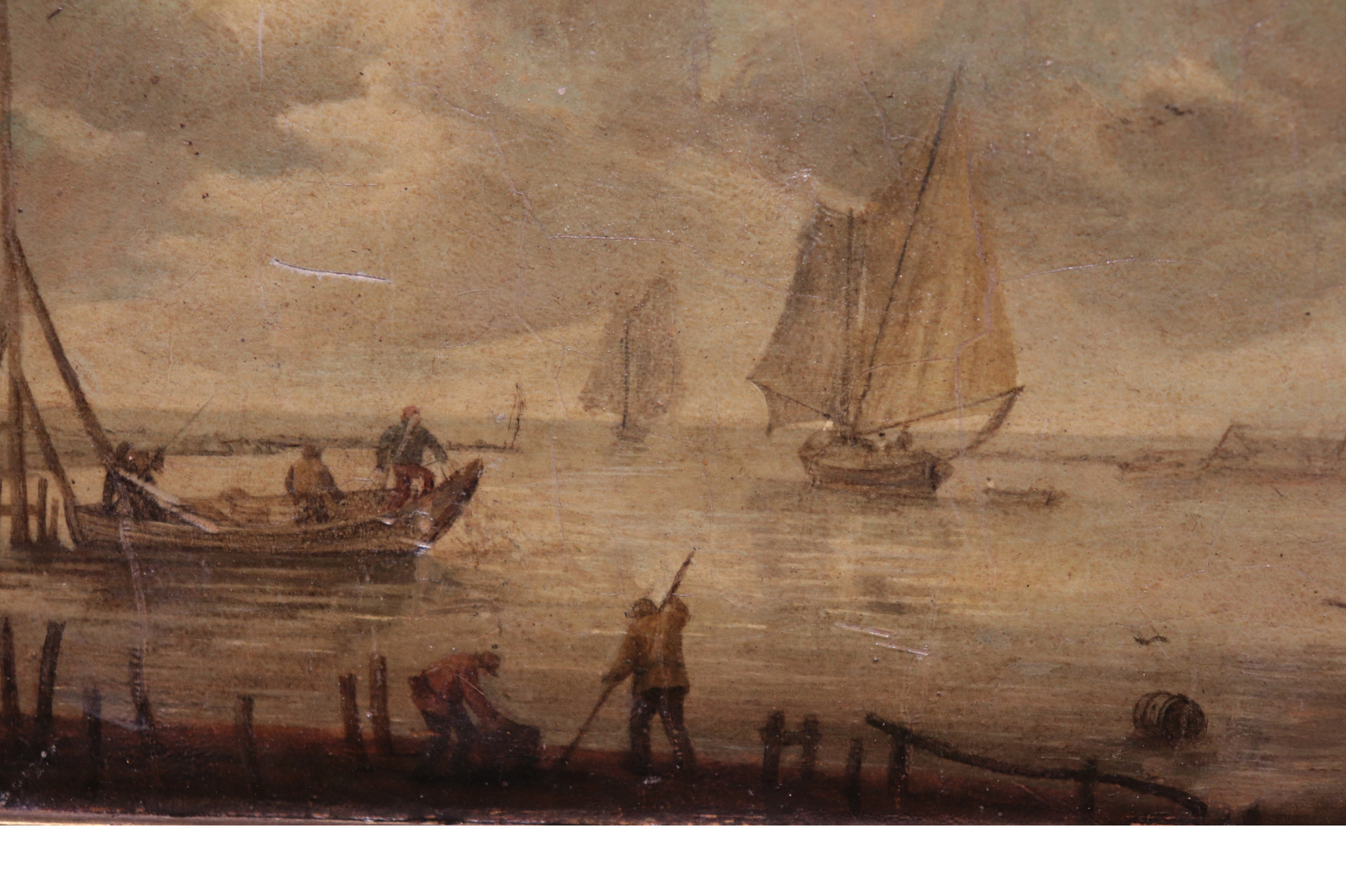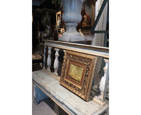 Dipinto ad olio su tavoletta raffigurante Marina Olandese. Scuola Olandese. Epoca: metà '800 Bellissima cornice. Dimensioni tavoletta: 22x19cm   dimensioni cornice 50x48cm