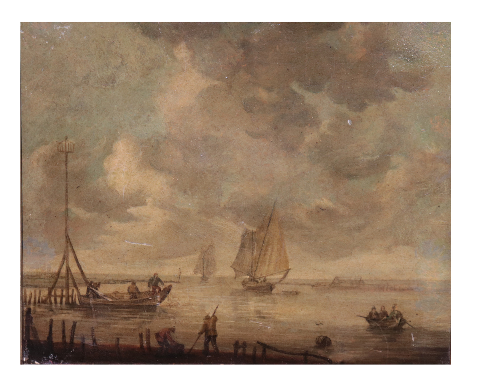 Dipinto Olandese: Marina con Barche, '800