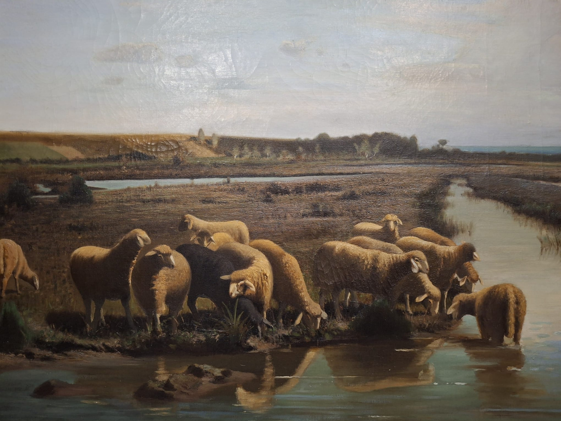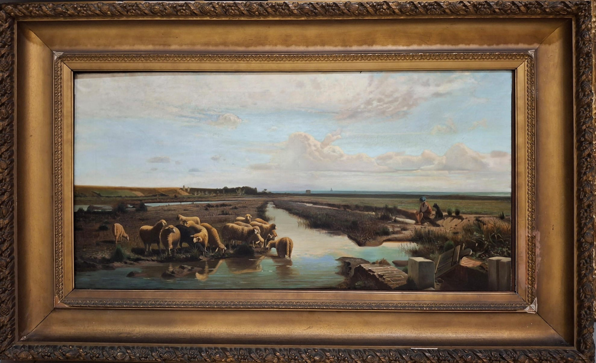 Saline di Cervia, dipinto del XIX secolo, olio su tela, non firmato, misure 68x136 cm, con cornice misure 108x175 cm. http://www.oldpaintingsonline.com