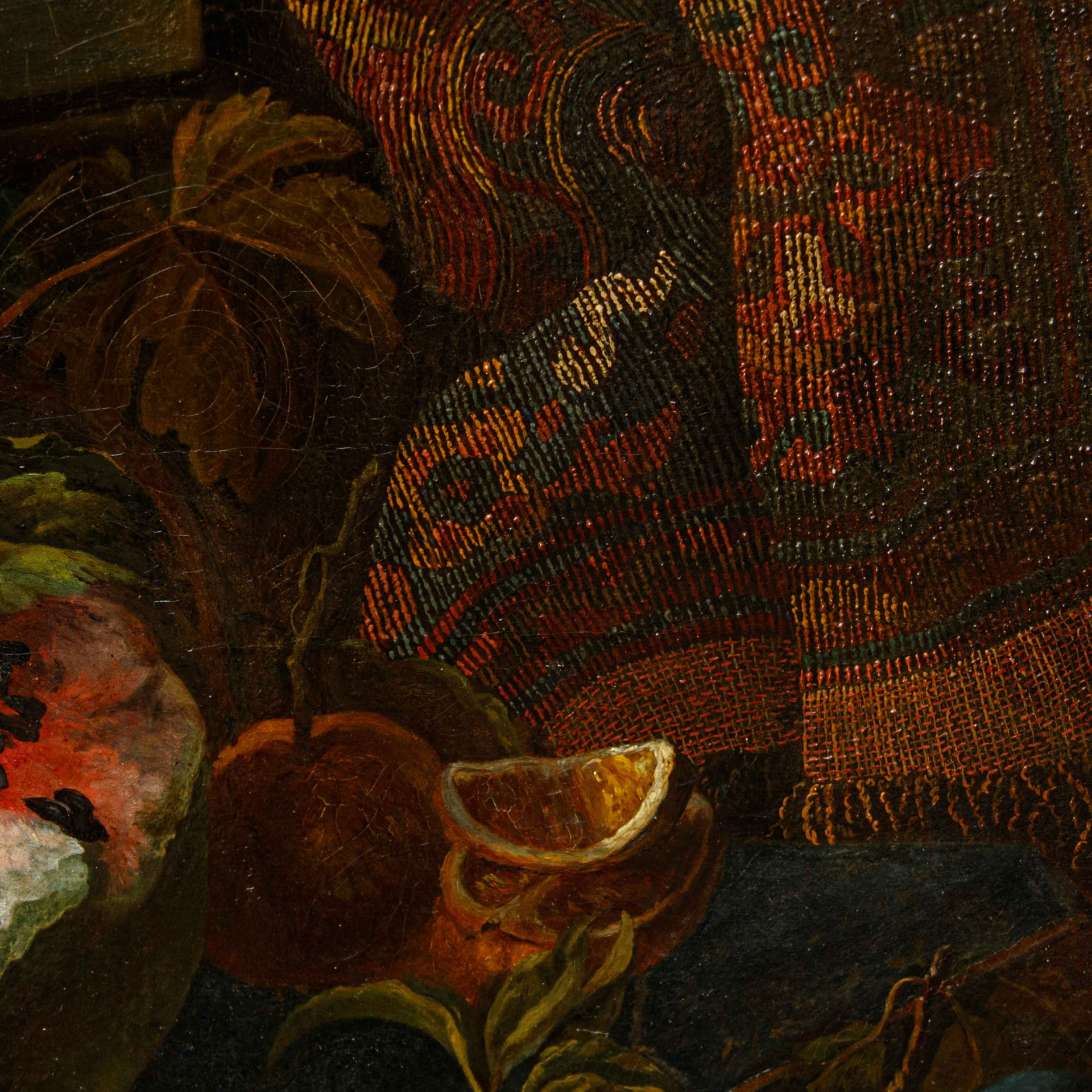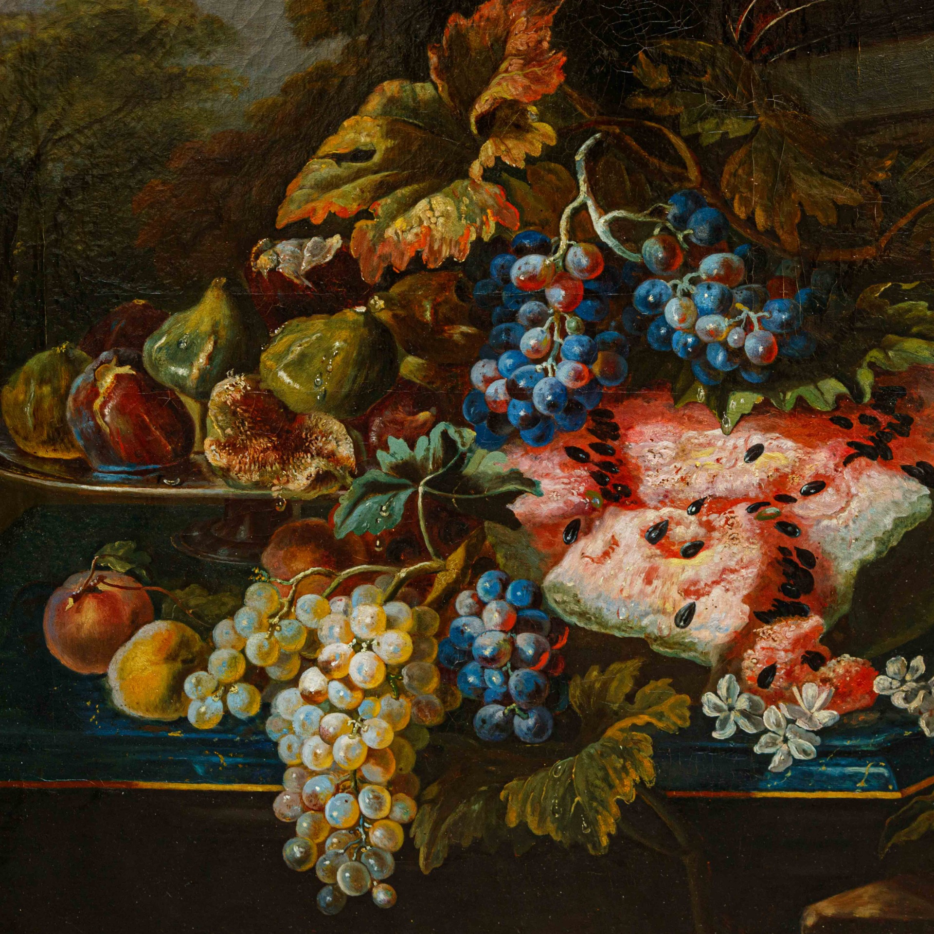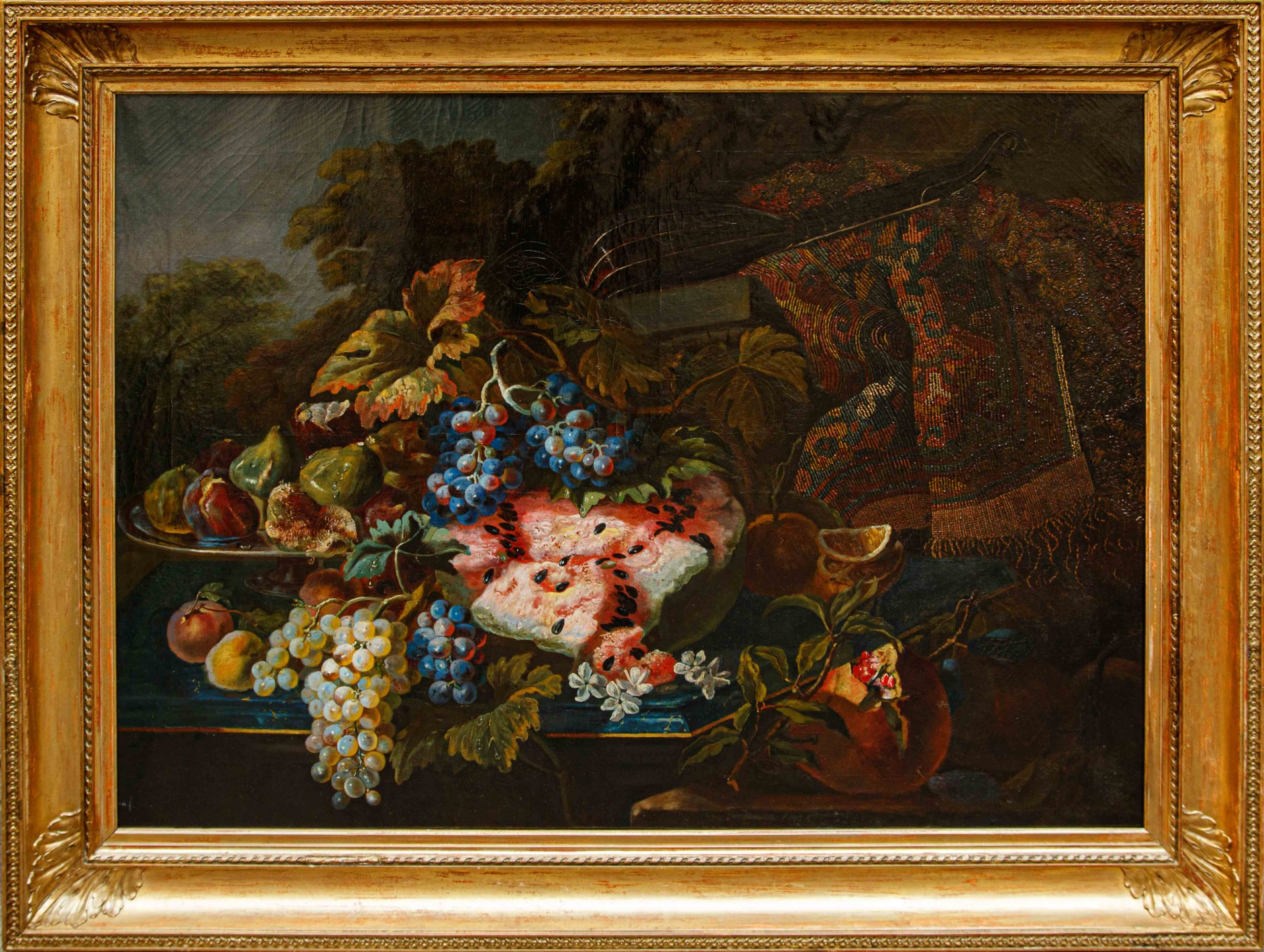 19th century, follower of Maximilian Pfeiler, Still life with grapes and watermelon and carpet