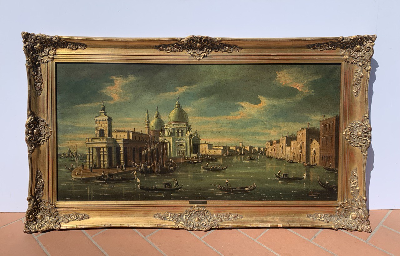 Francesco Guarana (attivo a Venezia nella seconda metà XIX sec.) - Venezia, veduta dell’inizio del Canal Grande con la basilica di S. Maria della Salute.