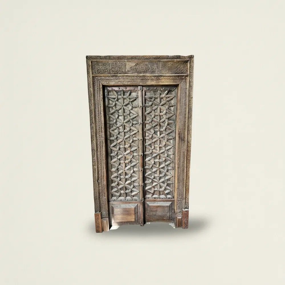 Scopri l'eleganza senza tempo di questo Antico Portone in Legno Intagliato del XVIII Secolo. Manifattura indiana, realizzato in legno massello finemente intagliato, questo portone rappresenta una combinazione perfetta di stile classico e artigianato unico che trasforma qualsiasi spazio. Il suo...
