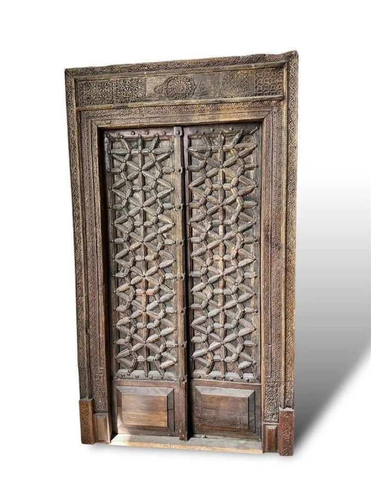 Scopri l'eleganza senza tempo di questo Antico Portone in Legno Intagliato del XVIII Secolo. Manifattura indiana, realizzato in legno massello finemente intagliato, questo portone rappresenta una combinazione perfetta di stile classico e artigianato unico che trasforma qualsiasi spazio. Il suo...