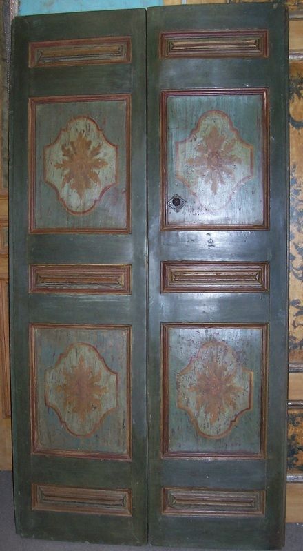 01 Painted two-panel Marche door. Dimensions: 106*210. Back slab (smooth). Epoch: late 17th century
