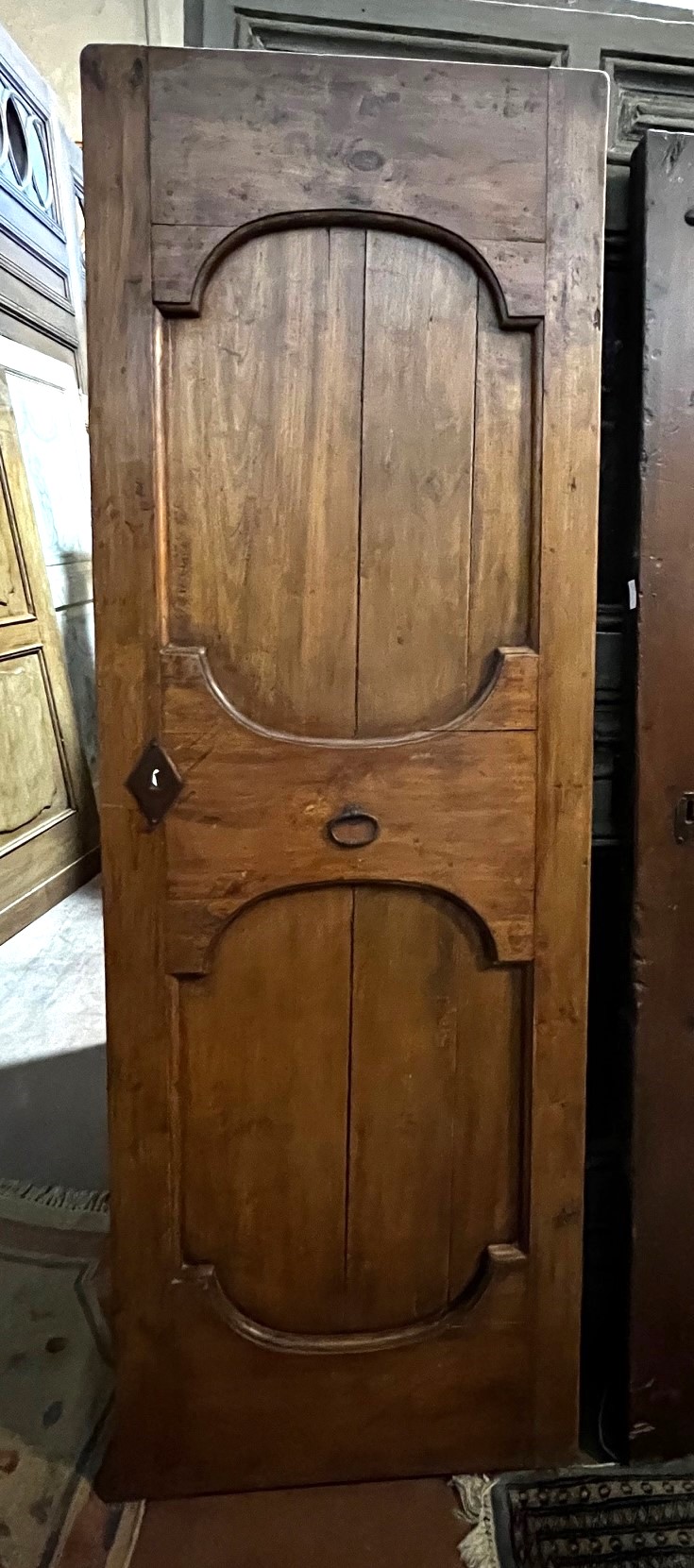 PTCI566 - Portoncino in legno di noce ad un battente, con due pannelli intagliati. Epoca '700. Con battacchio. Misura cm L 69 x H 202