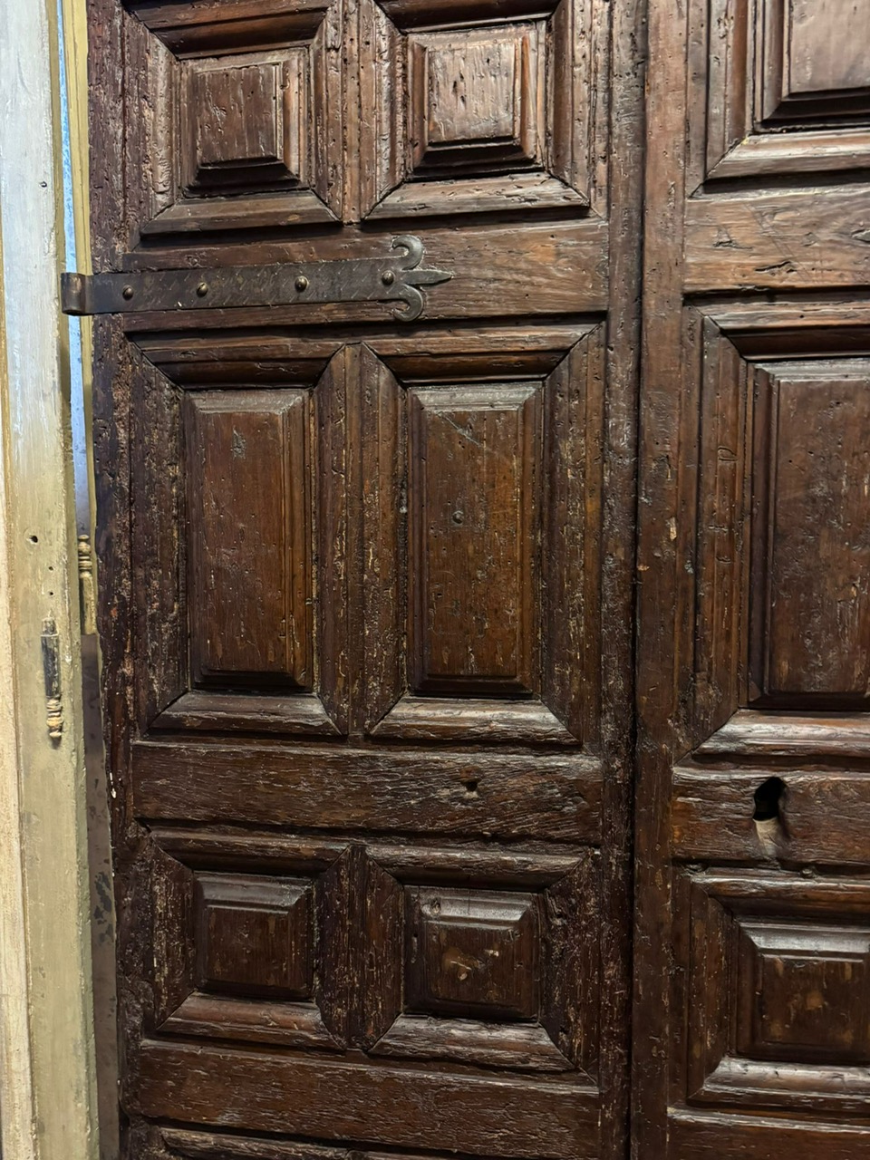 PTCI570 - Walnut wood door, two leaves with carved panels.