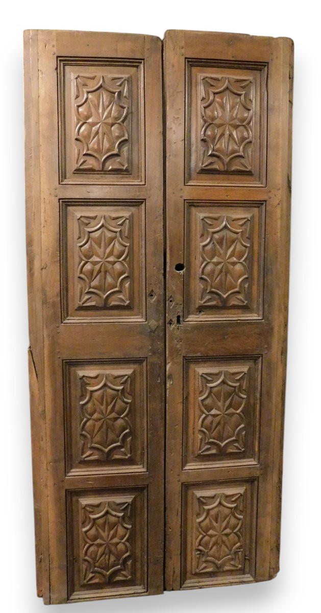 PTS304 - No. 2 similar double-leaf walnut wood doors with sculpted Baroque panels.