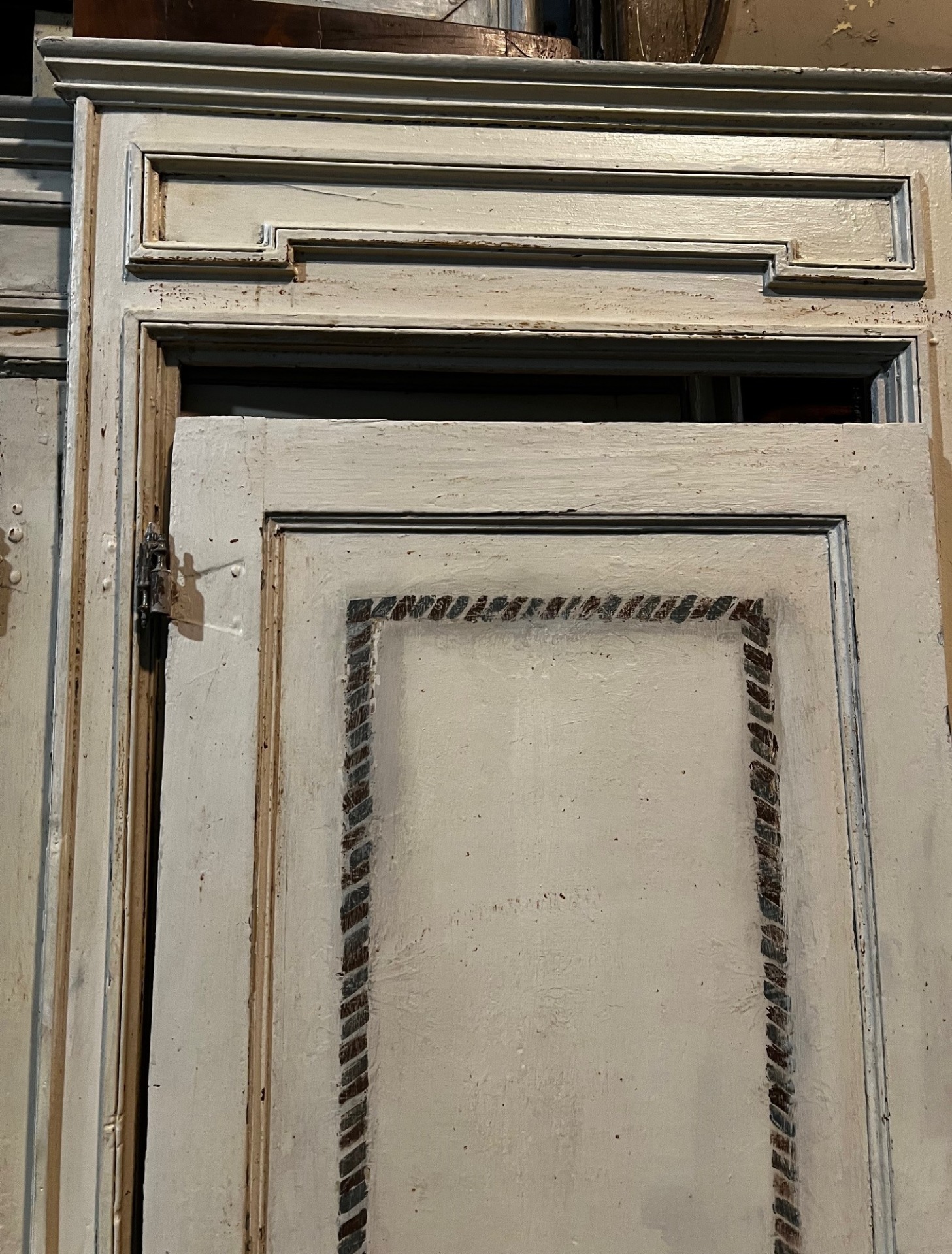PTS899 - No. 6 Lacquered wooden doors. Single leaf, complete with frame. 18th century. Double-sided: the back is also lacquered and painted. Pull opening. Various sizes: With frame cm W 106 (+ hat protrusion) x H 214, opening cm W 83 x H 190, pull opening to the right With frame cm W 103 (+ hat protrusion) x H 222, opening cm W 81 x H 185, pull opening to the left With frame cm W 102 (+ hat protrusion) x H 222, opening cm W 82 x H 190, pull opening to the left With frame cm W 107 (+ hat protrusion) x H 220, opening cm W 86 x H 200, pull opening to the left With frame cm W 100 (+ hat protrusion) x H 220, opening cm W 83 x H 204, pull opening to the right With frame cm W 99 (+ hat protrusion) x H 213, opening cm W 80 x H 200, pull opening to the left