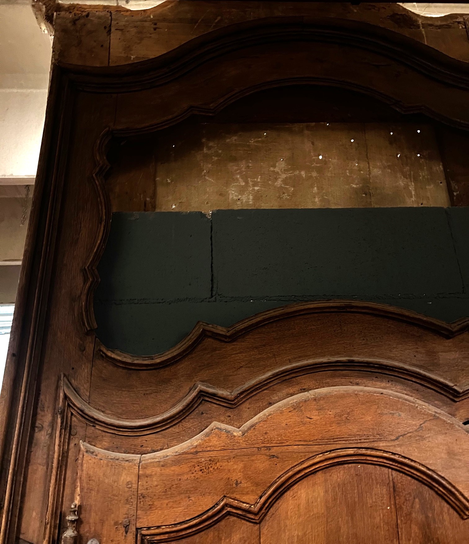 A round-arched leaf, complete with frame and overdoor with missing painting.