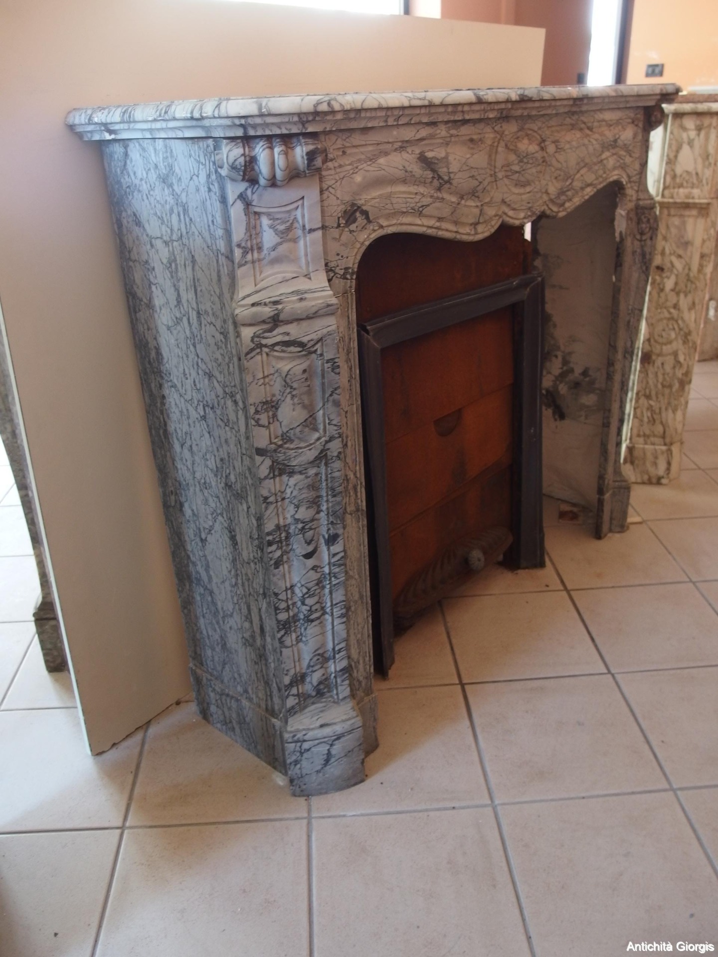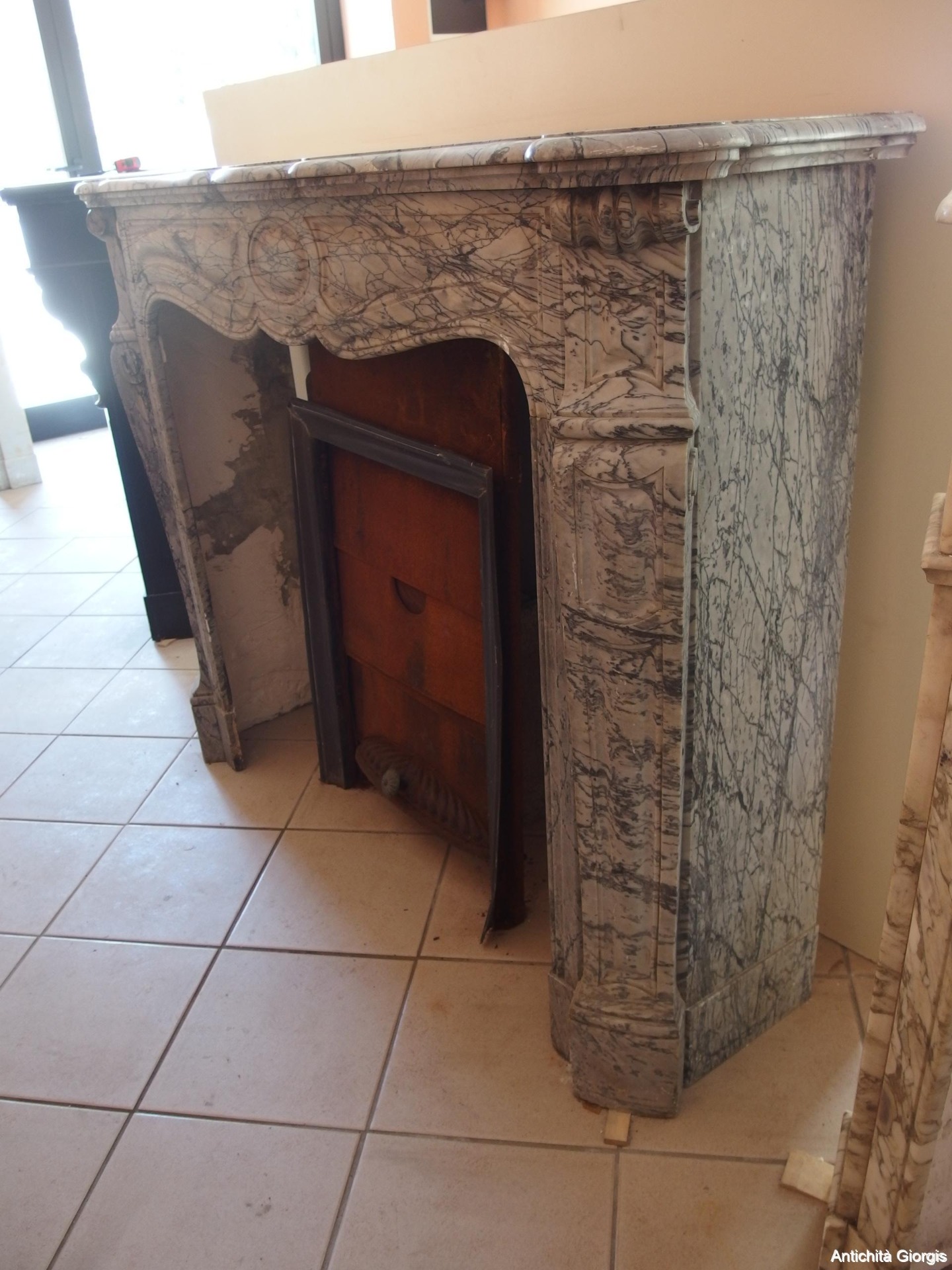 LOUIS XVI POMPADOUR STYLE GRAY MARBLE FIREPLACE FRANCE cm L134xW37xH108