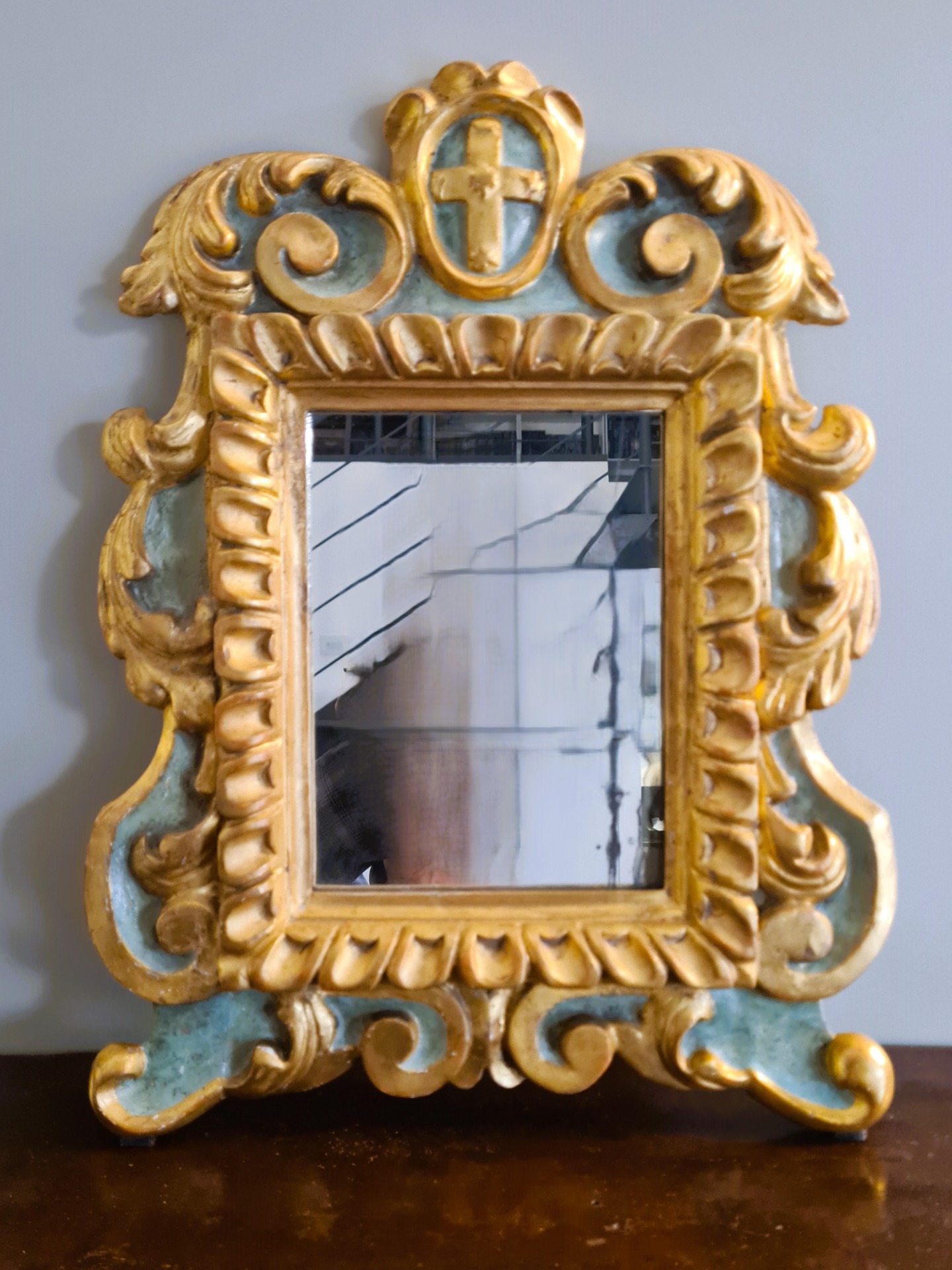 Triptych of cantaglorie in gilded and lacquered wood in excellent condition.