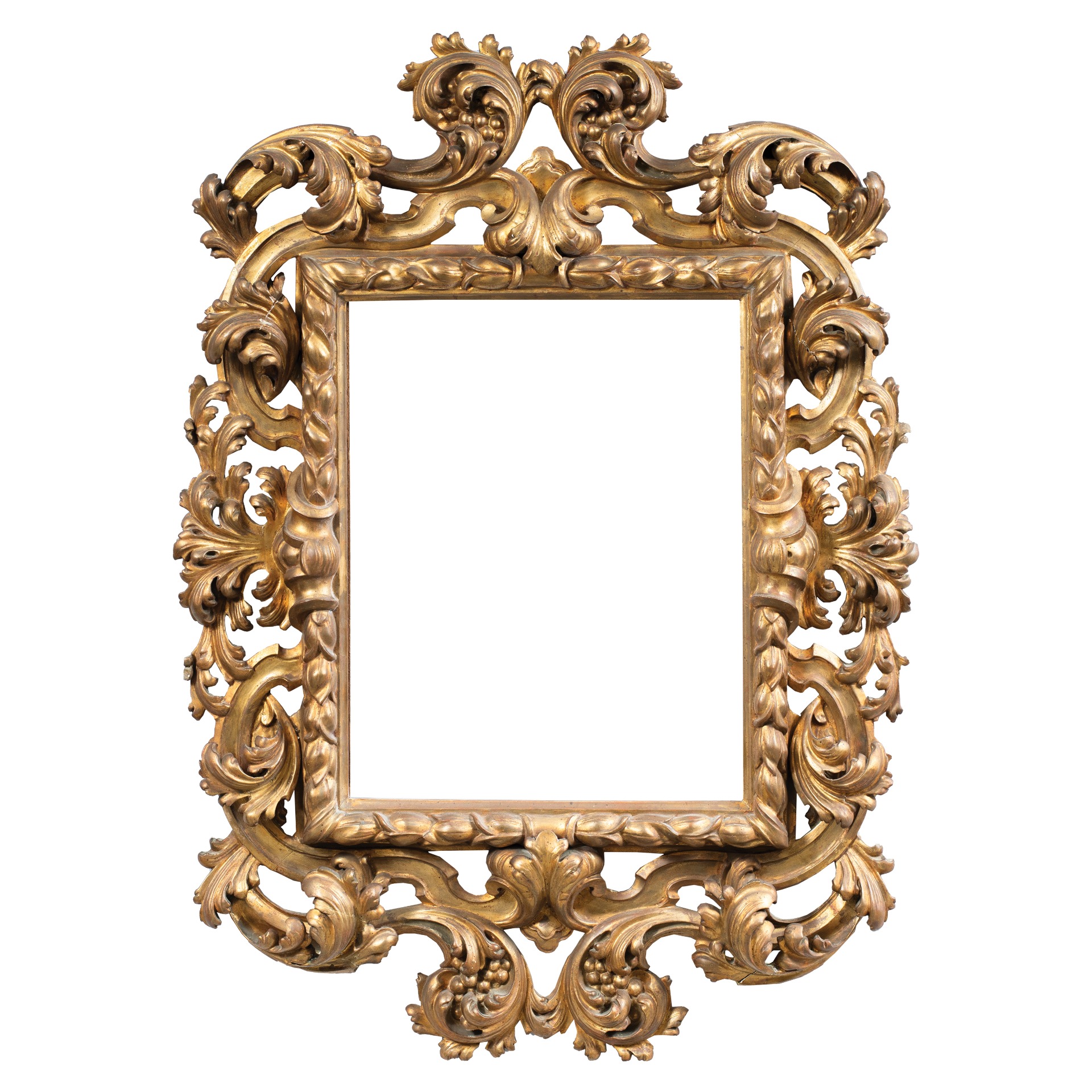 Large Baroque-style frame in carved and gilded wood. Bologna, late 19th century.