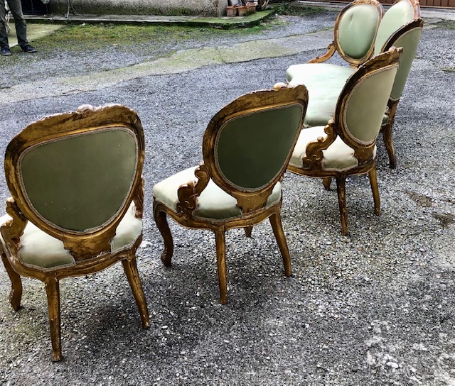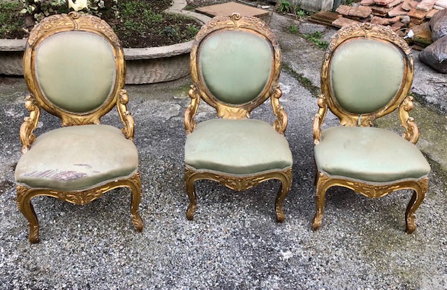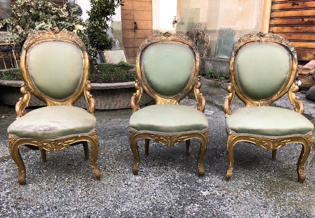 3 poltrone dorate metà ottocento