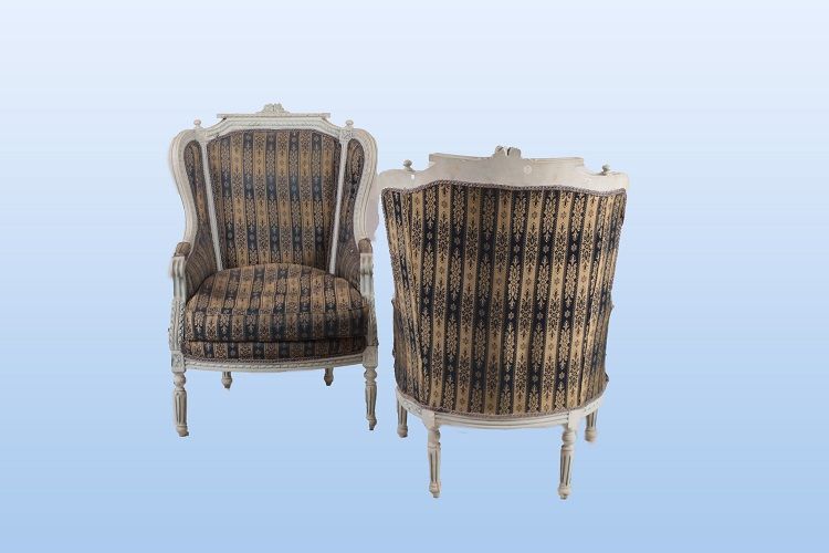Antique French armchairs from the 1800s, Louis XVI style, lacquered in light blue