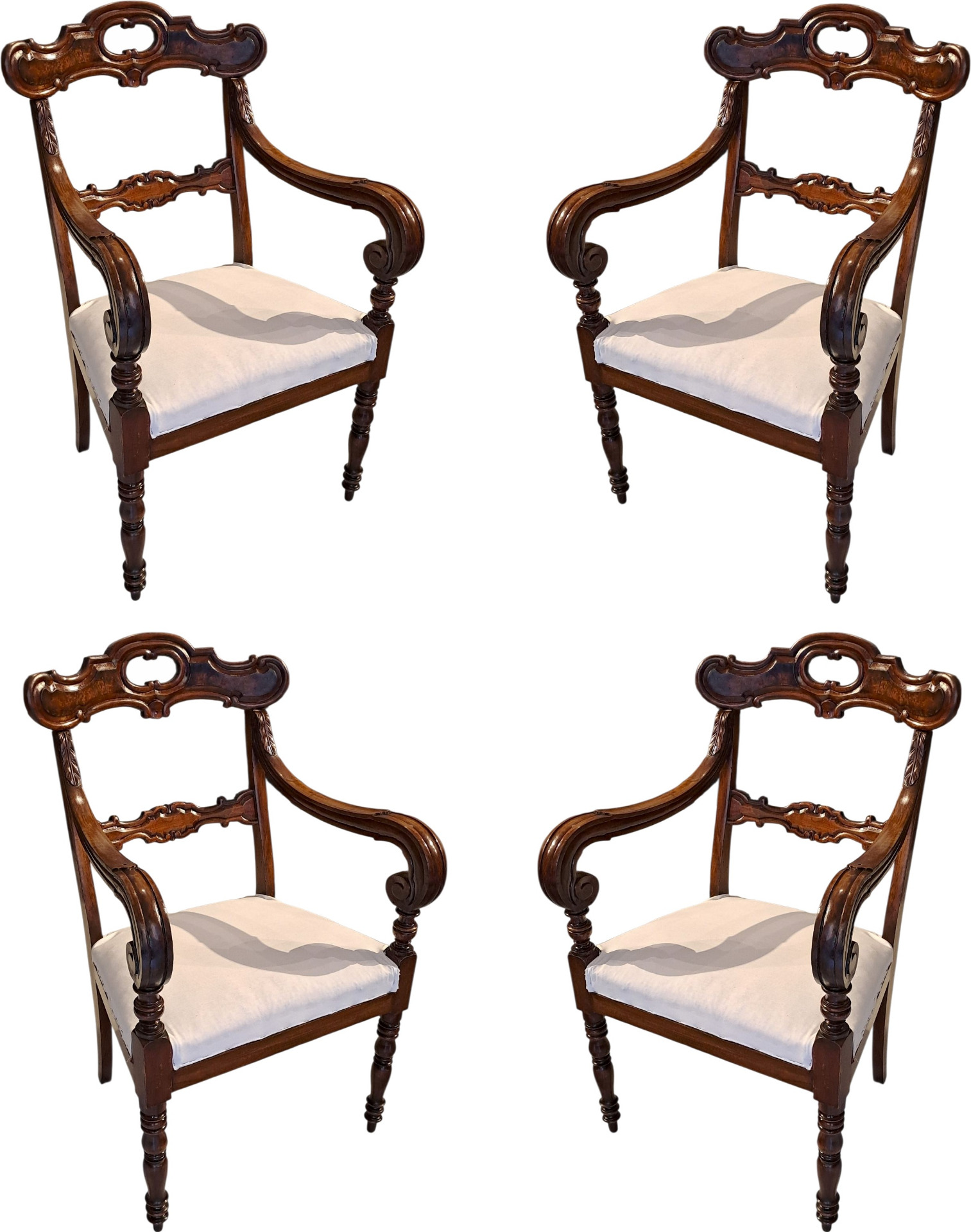 A magnificent quartet of antique Genoese armchairs, dating back to the 19th century, is offered.