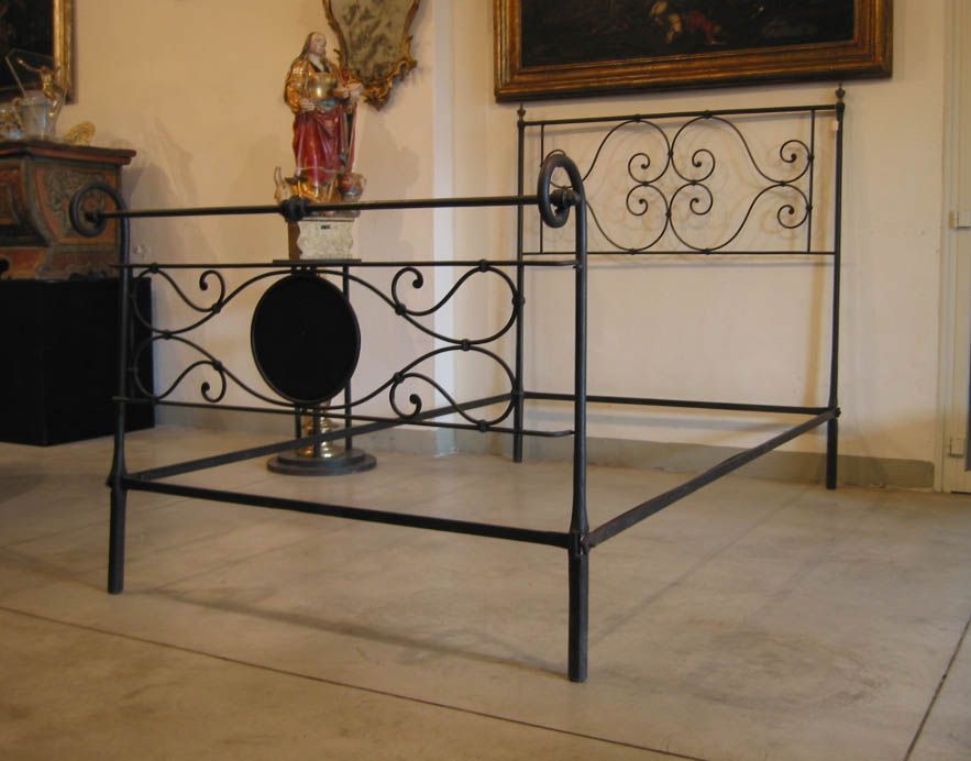 Wrought iron bed. Tuscany, 1700 The internal measurements where the mattress goes are: width 120 cm; length 200 cm