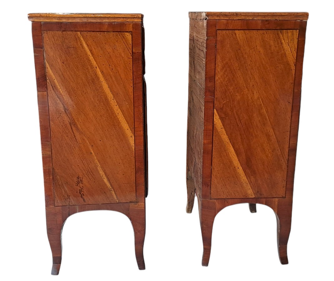 We present a rare pair of nightstands of Venetian manufacture, precisely datable to the 18th century, more specifically to the so-called Transitional period between Louis XV and Louis XVI.