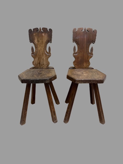 Pair of finely carved walnut chairs. Italy, 19th century. Measurements: 49 x 39 H 93 cm.