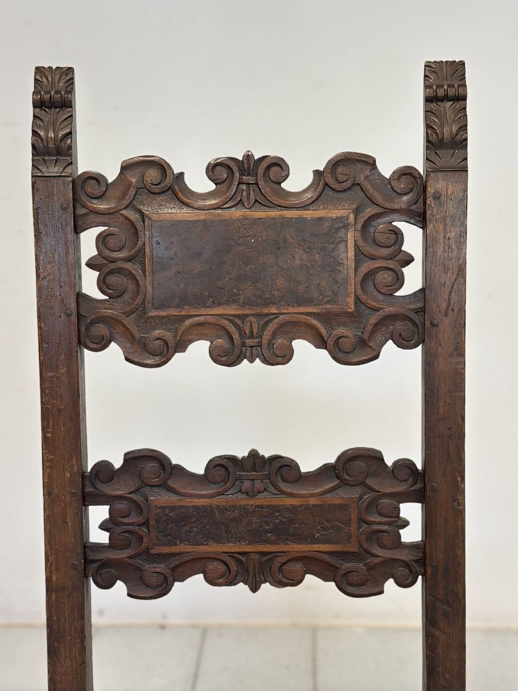 Sedia a cartella Luigi XIV in noce intagliato . Lombardia epoca 600