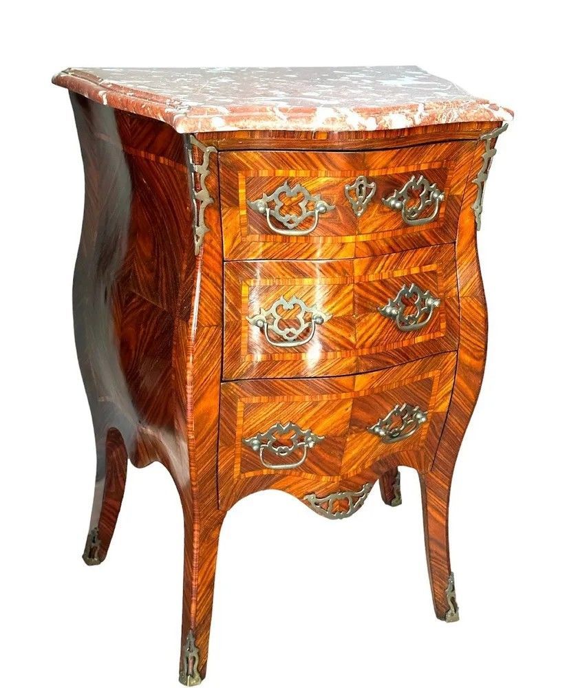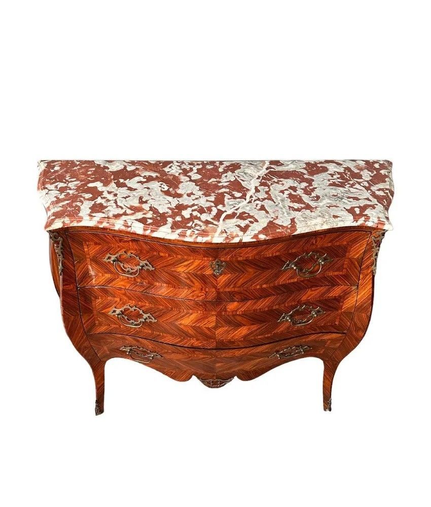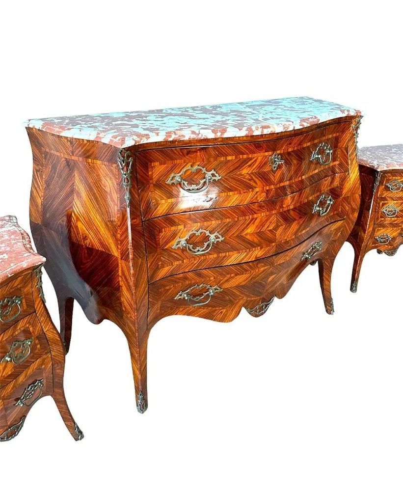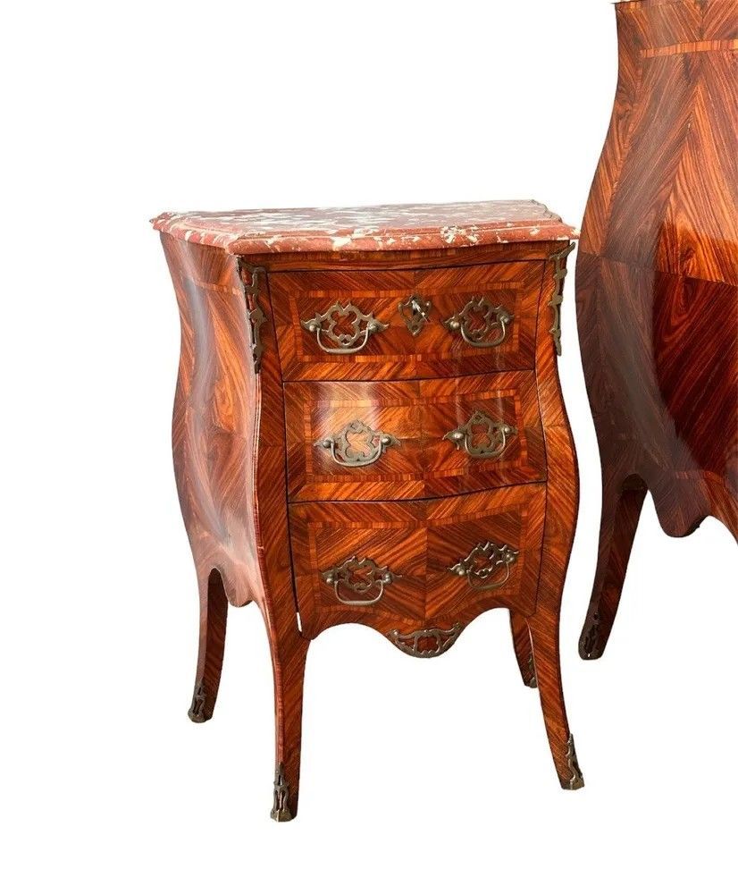 Scopri l'arte dell'arredamento con questo cassettone e comodini in legno di ebano del XIX secolo. Caratterizzati da una manifattura siciliana e rifiniti con marmo rosso, questi pezzi aggiungono un tocco di eleganza e raffinatezza ad ogni camera da letto.Realizzati con la massima attenzione ai dettagli.Design classico e senza tempo.Aggiunta perfetta per un arredamento tradizionale. Trasforma la tua casa in uno spazio chic e sofisticato con questo set d’arredo straordinario.Gli articoli sono vendibili separatamente!Misure Comò: L 130 x H 96 x P 50Misure Comodini: L 50 x H 69 x P 34Stile: Luigi XV Materiale: LegnoAltezza (cm): 96Larghezza (cm): 130Profondità (cm): 50Epoca: XIX Secolo - 1800
