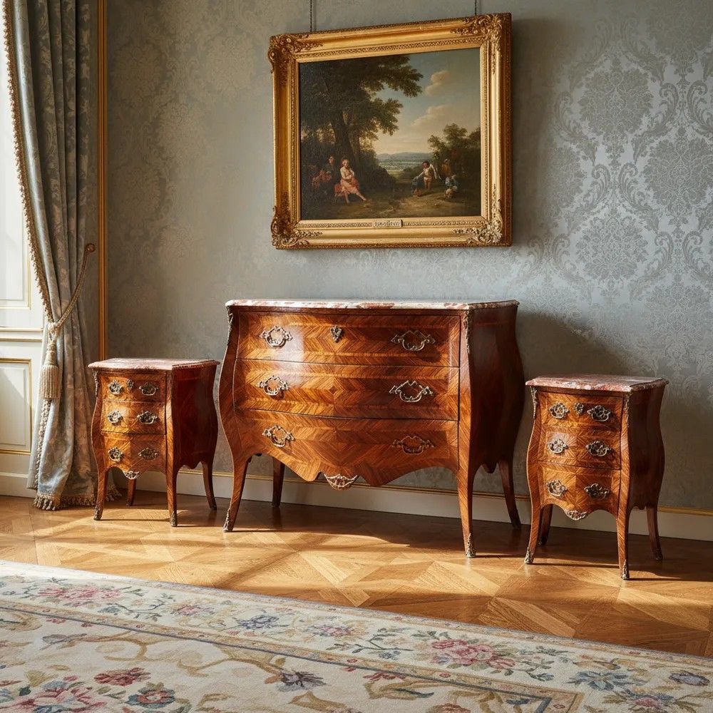 Cassettone e Comodini in Legno di Ebano del XIX Secolo