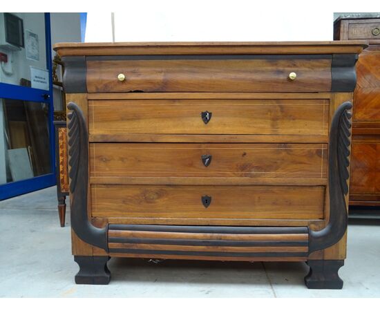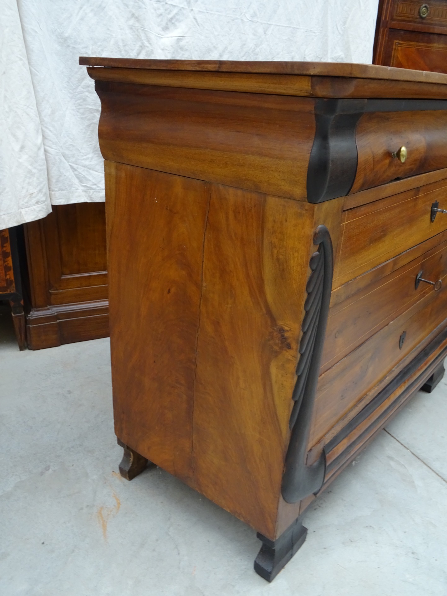 Cassettone in noce vercellese Carlo X scolpito e filettato 1820 Piemonte