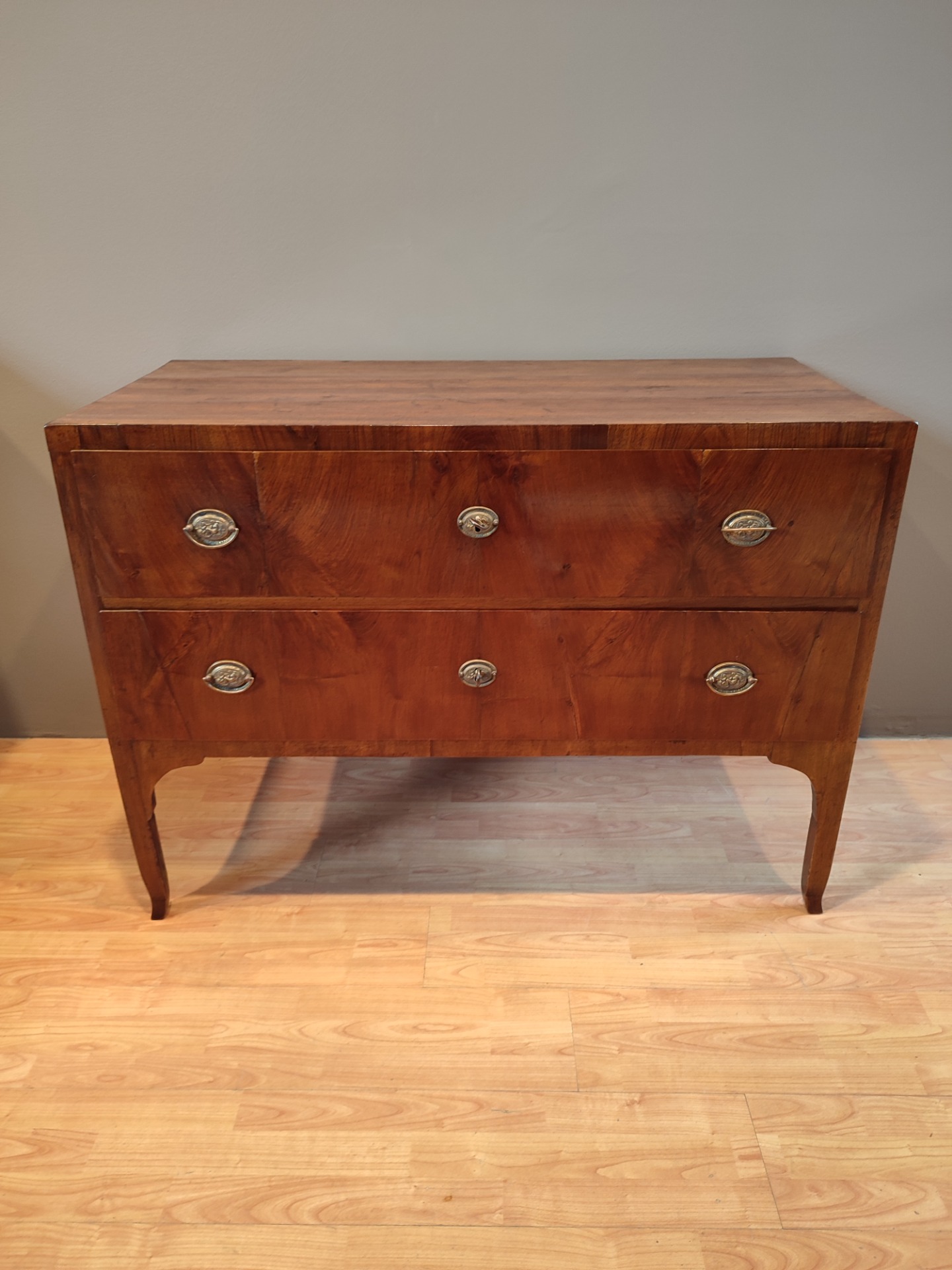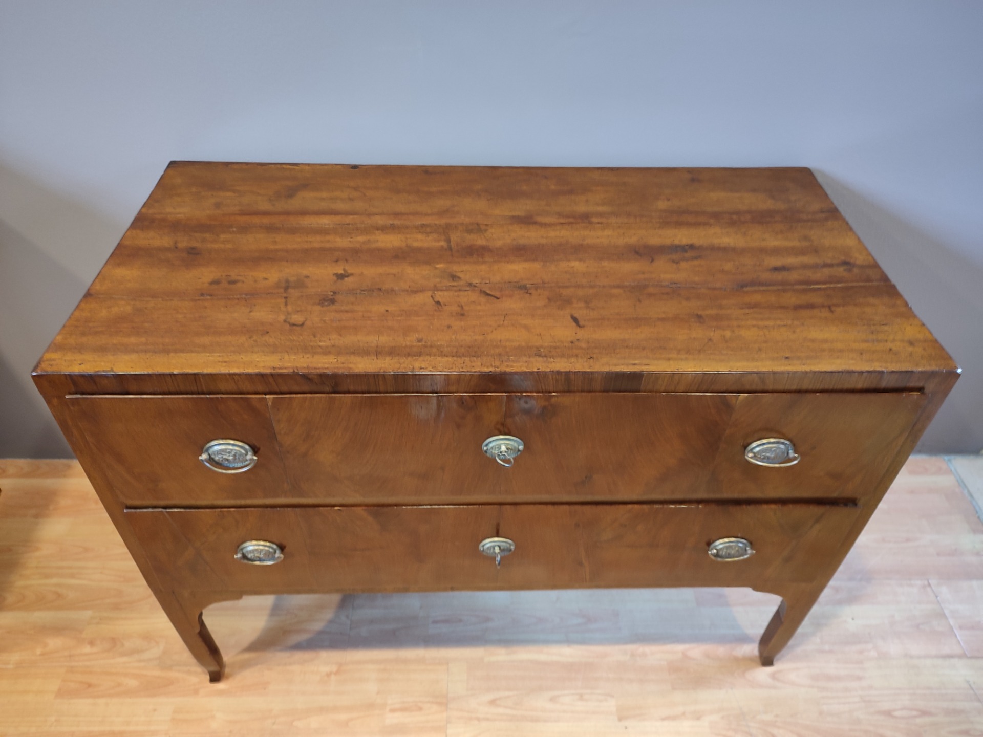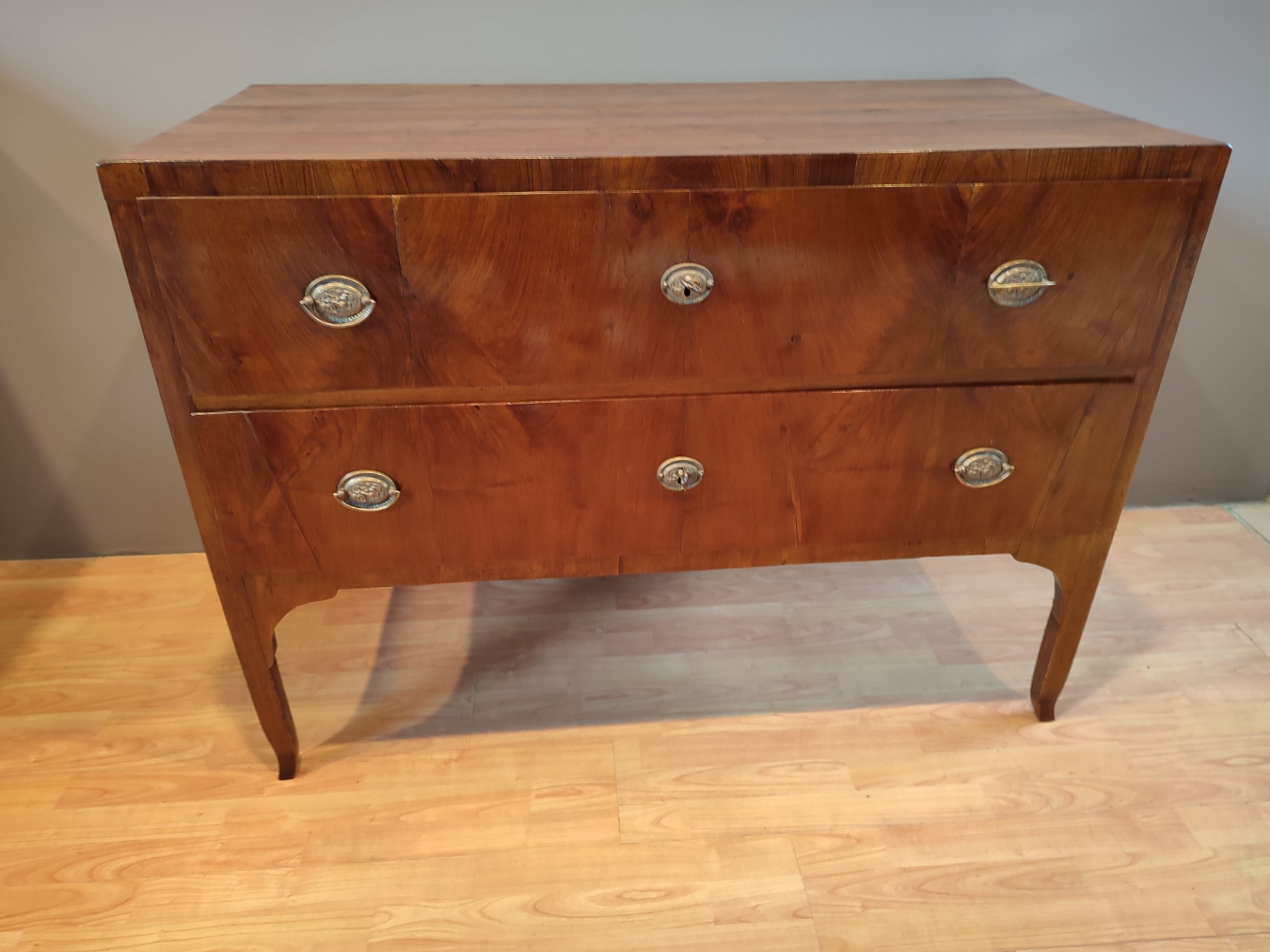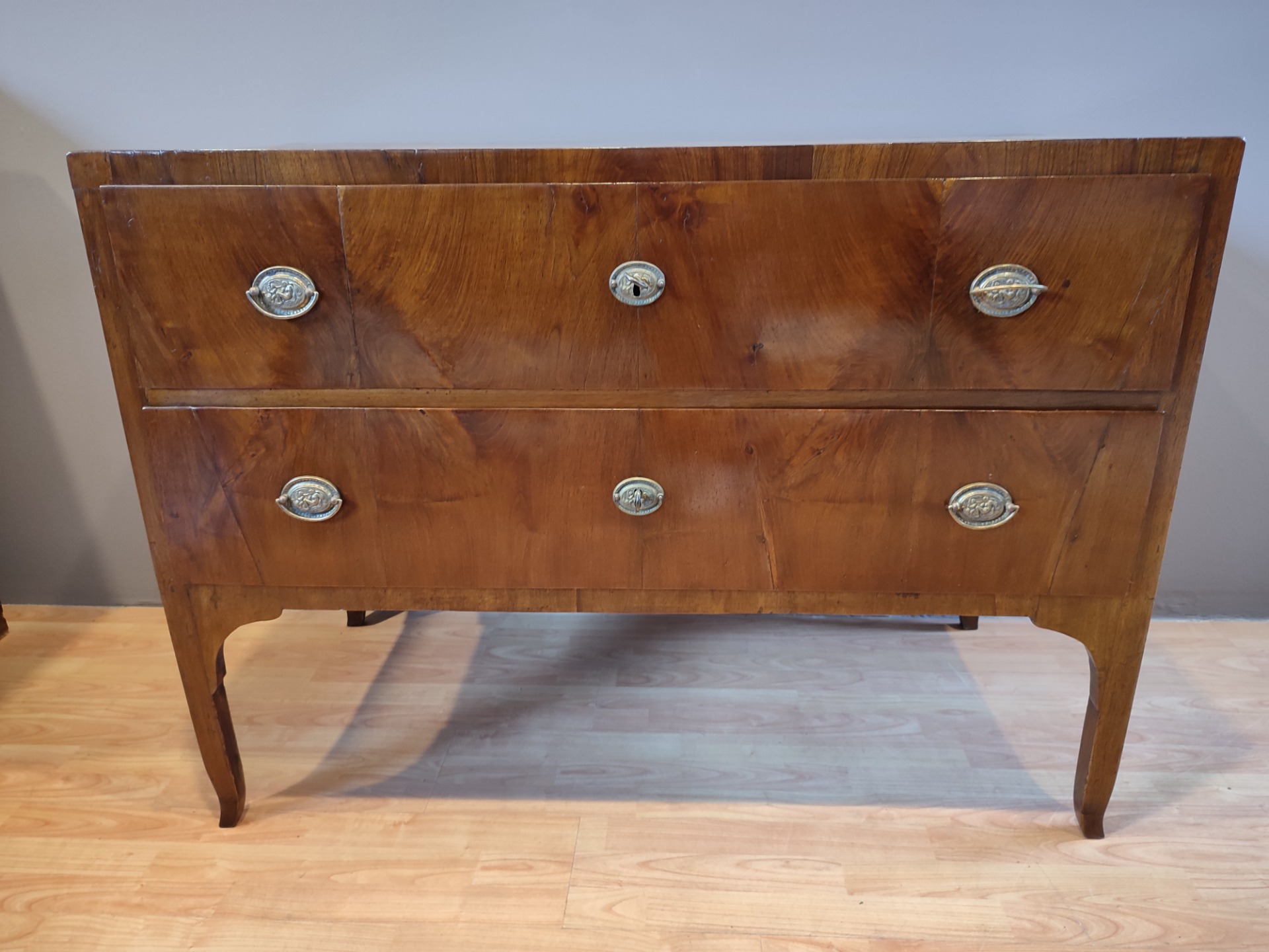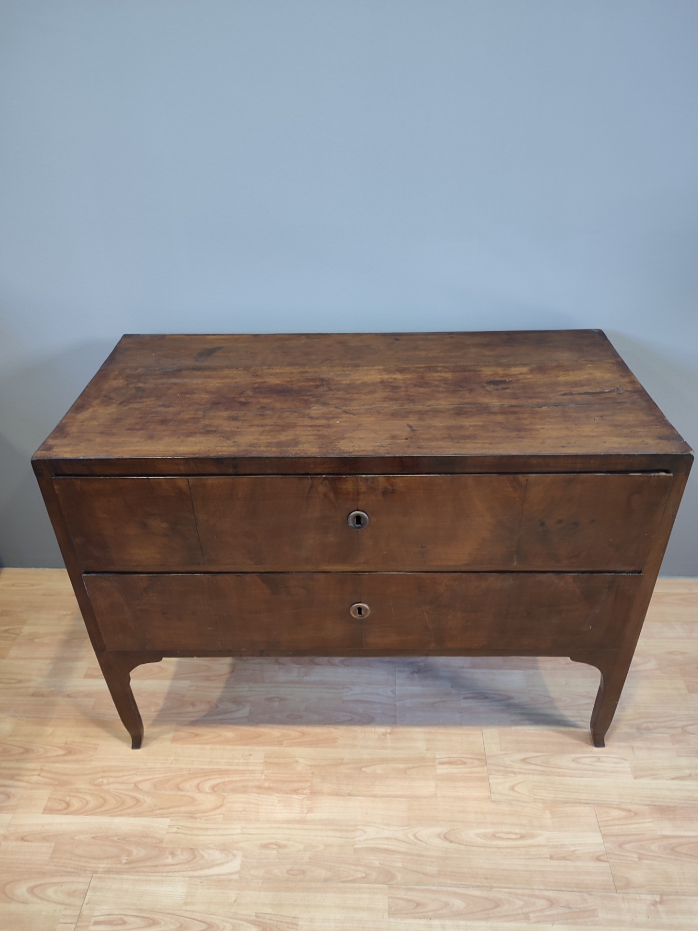 Directoire period walnut chest of drawers with 2 drawers, original locks.Photos also taken before restoration.