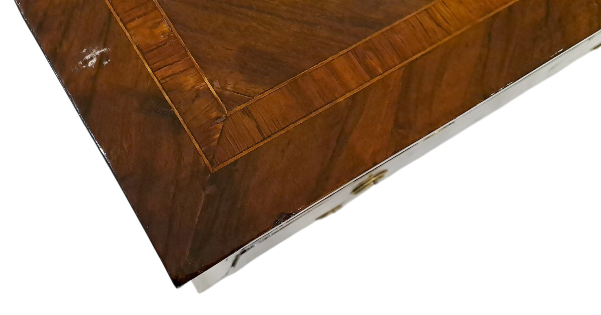 Lombard Louis XVI Chest of Drawers Type: Chest of Drawers Period: Louis XVI, second half of the 18th century. Origin: Lombardy. Detailed description: This antique chest of drawers, an expression of high Lombard and Milanese cabinetmaking, features a solid structure and a linear, squared shape, resting on four elegant truncated pyramid feet. The rigidity of the structural lines is a distinctive feature of the Louis XVI style. The piece of furniture is entirely veneered and inlaid with precious woods, including walnut burl, maple, and bois de rose. The rosette decoration with leaves extends across the front, sides, and top. The front is divided into three drawers of equal size. The handles are made of chased bronze. The dimensions are: 109 x 51, height 86 cm. A regular certificate of authenticity with photo is issued. We guarantee a response to your emails within 24 hours REGISTERED IN THE REGISTER OF EXPERTS AND CTU AT THE COURT OF LA SPEZIA