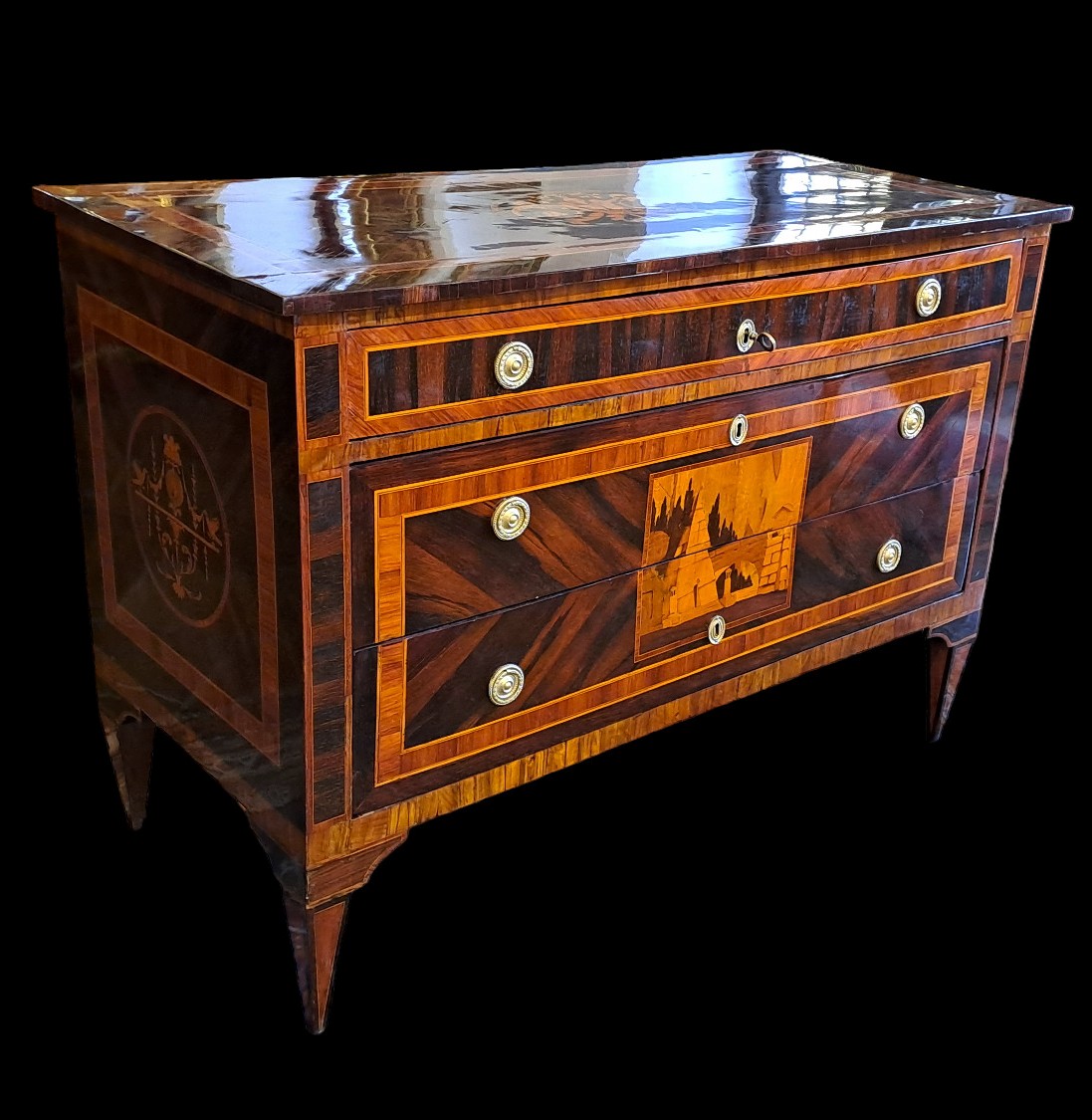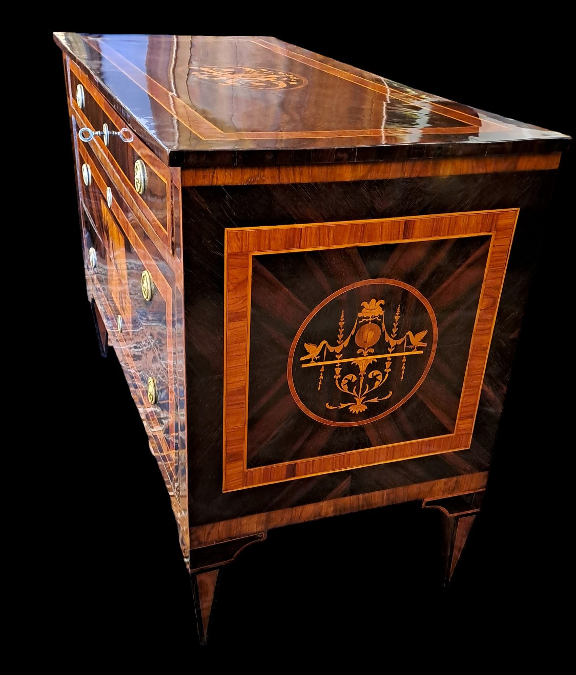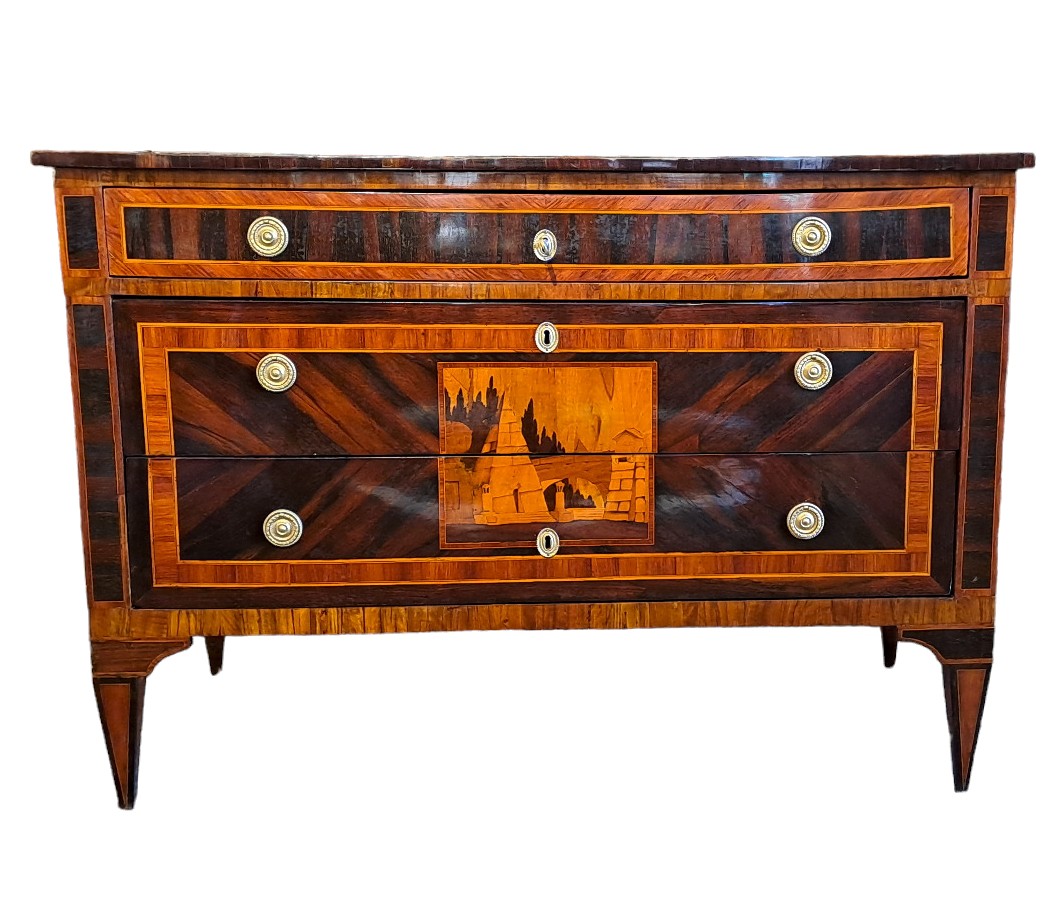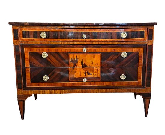 Chest of drawers veneered in rosewood and bois de rose.Front with two mirror drawers and a small one under the top.