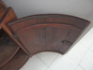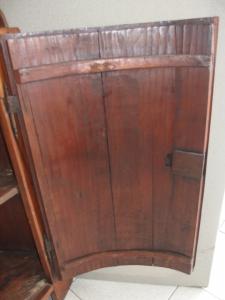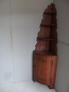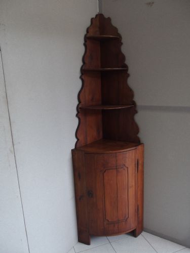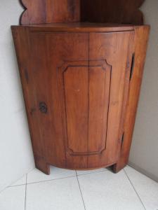 Beautiful curved cherry corner cabinet with a Louis XVI style tiered top, late 18th century, from Piedmont. The furniture needs little restoration (SEE PHOTO) and is completely original. The top can be detached and used as an etagere if desired. Dimensions: cm W45xH208. Shipping cost 110 euros.