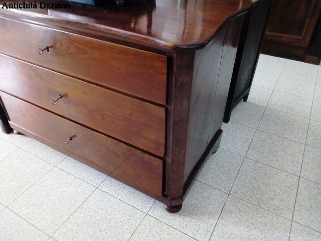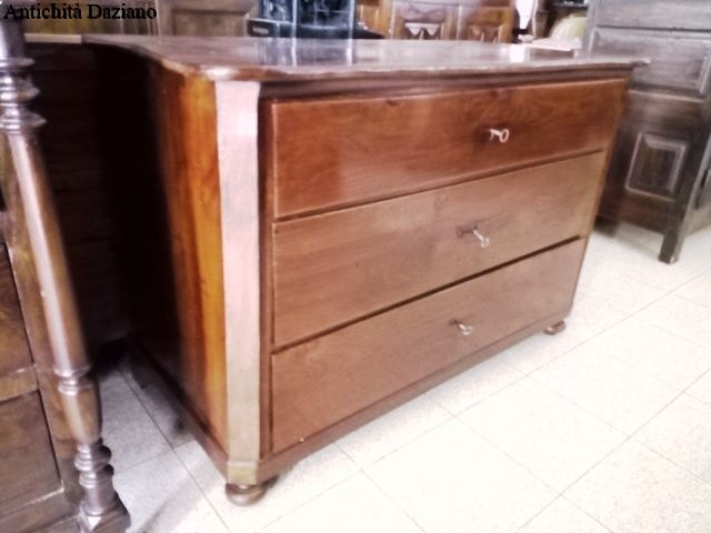 Restored late 19th-century oak chest of drawers with 3 drawers. Dimensions: H 69 cm – W 125 cm – D 61 cm Shipping costs to be determined