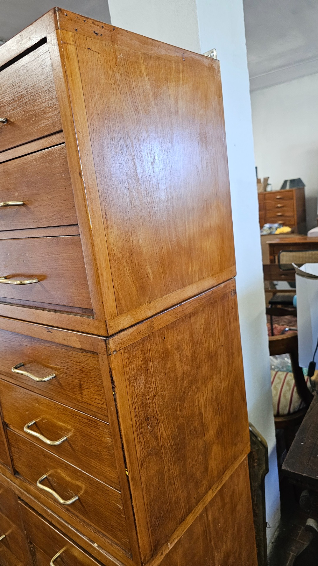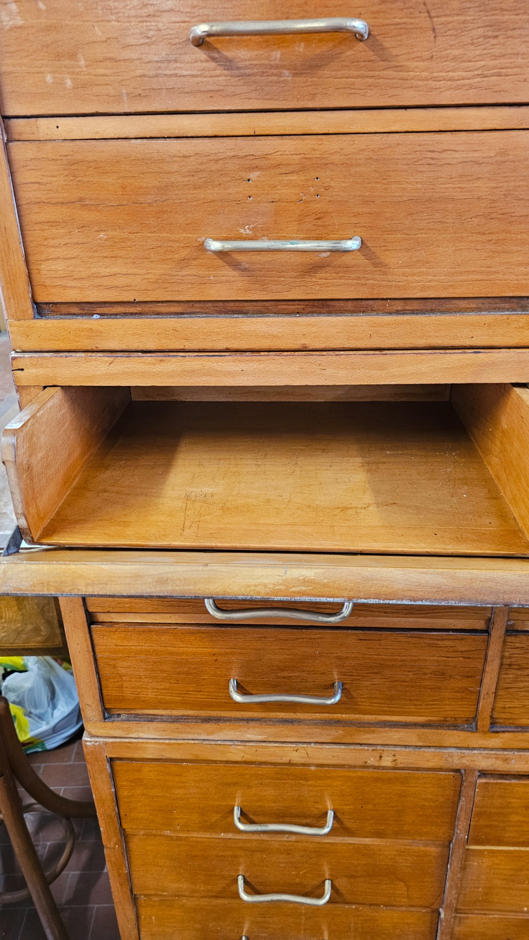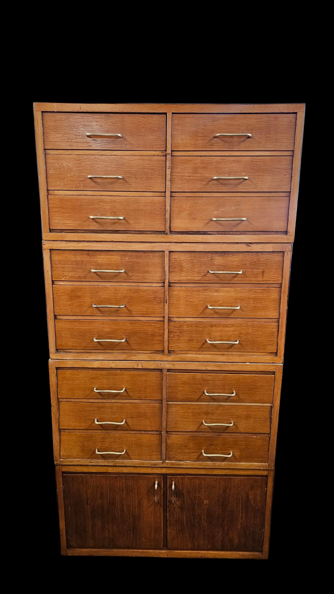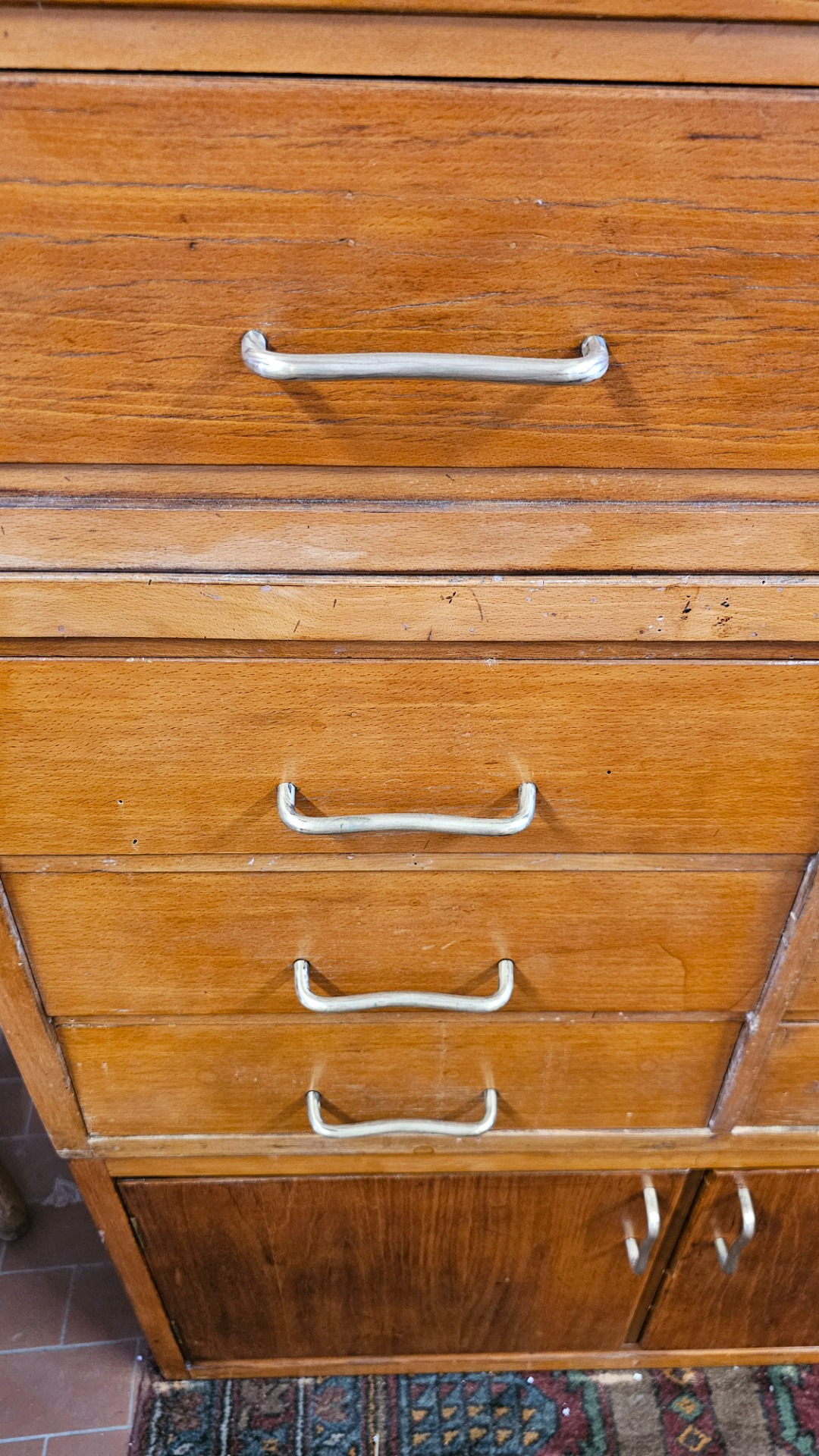 Beautiful office drawer unit. A drawer with a drop-down front. Two doors at the bottom. Dimensions: width 80, depth 40, height 180. Period: 1940s.
