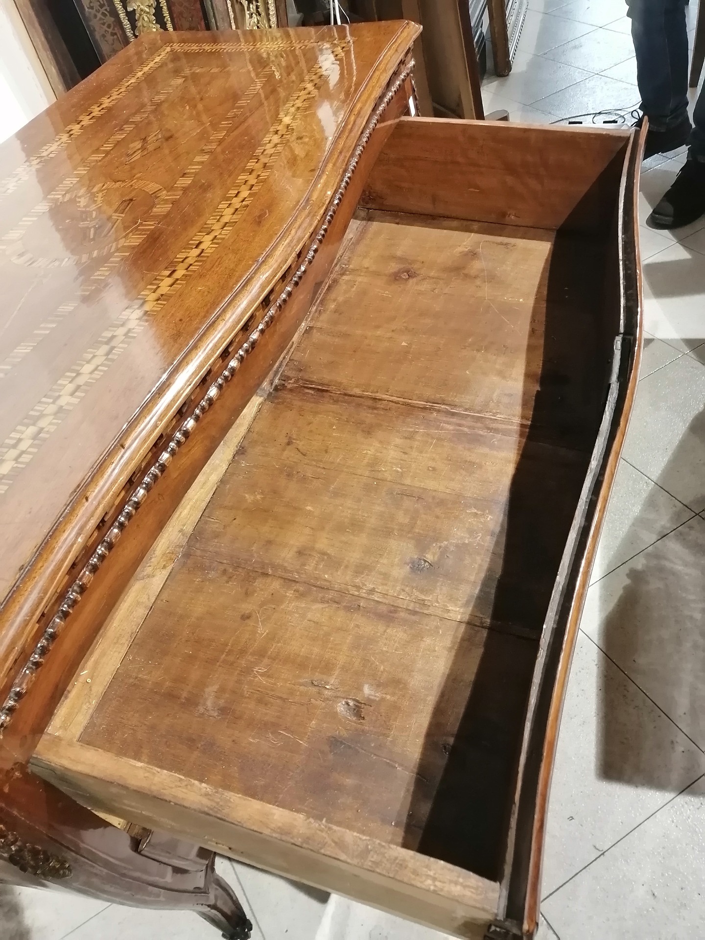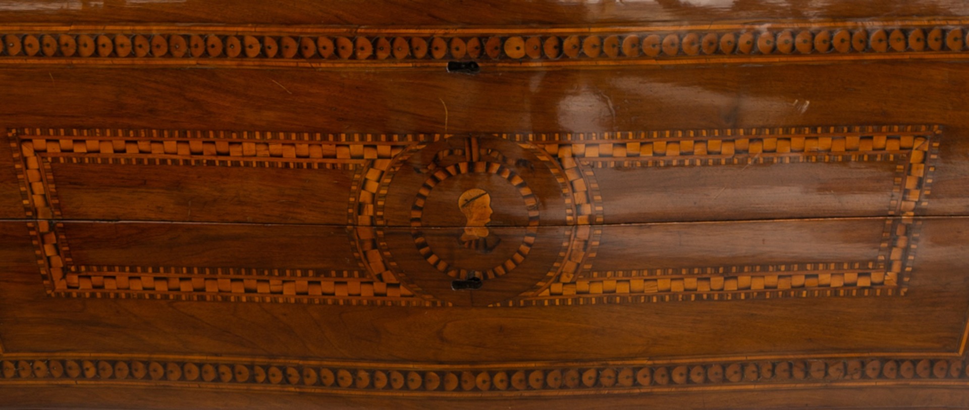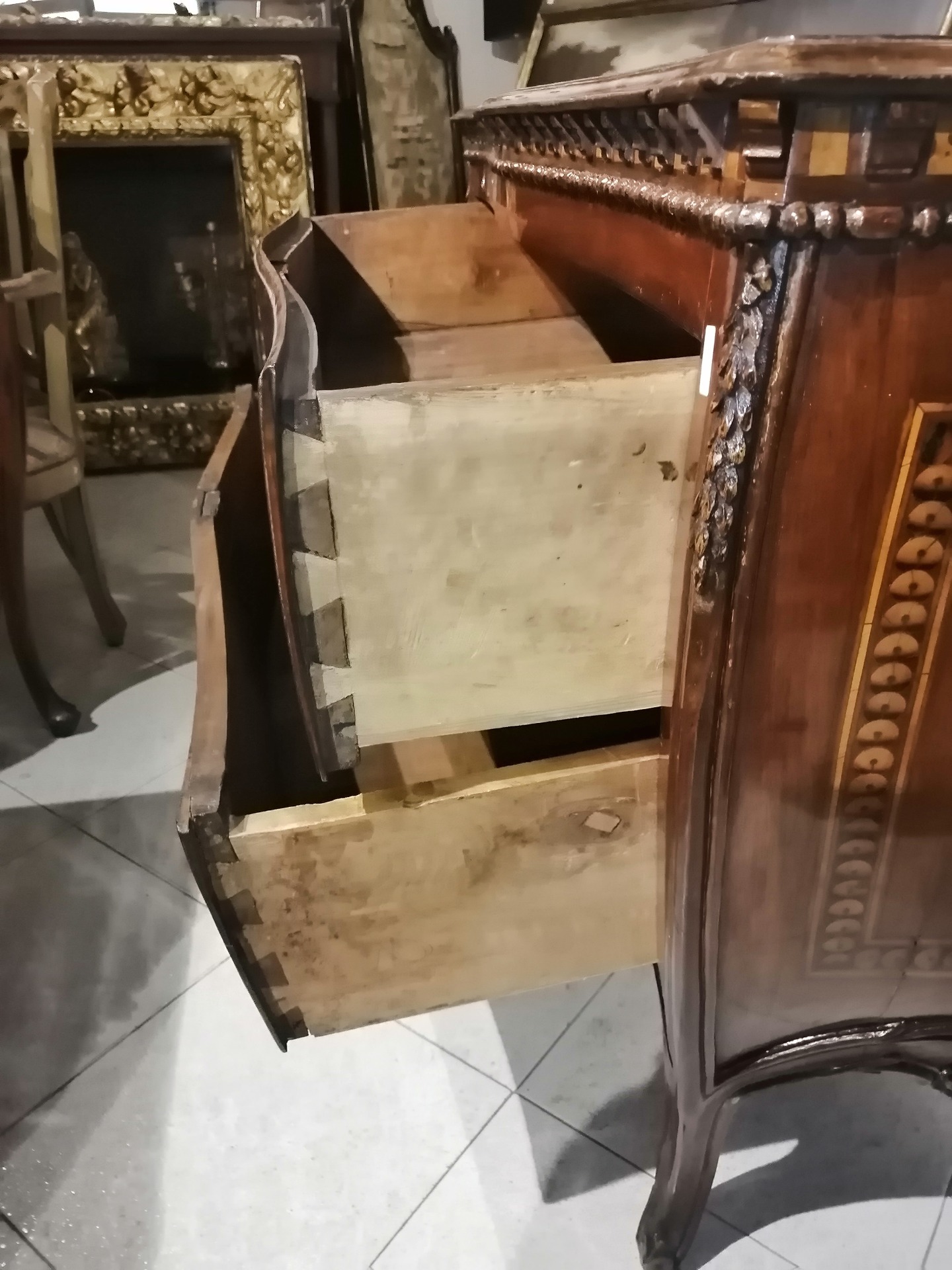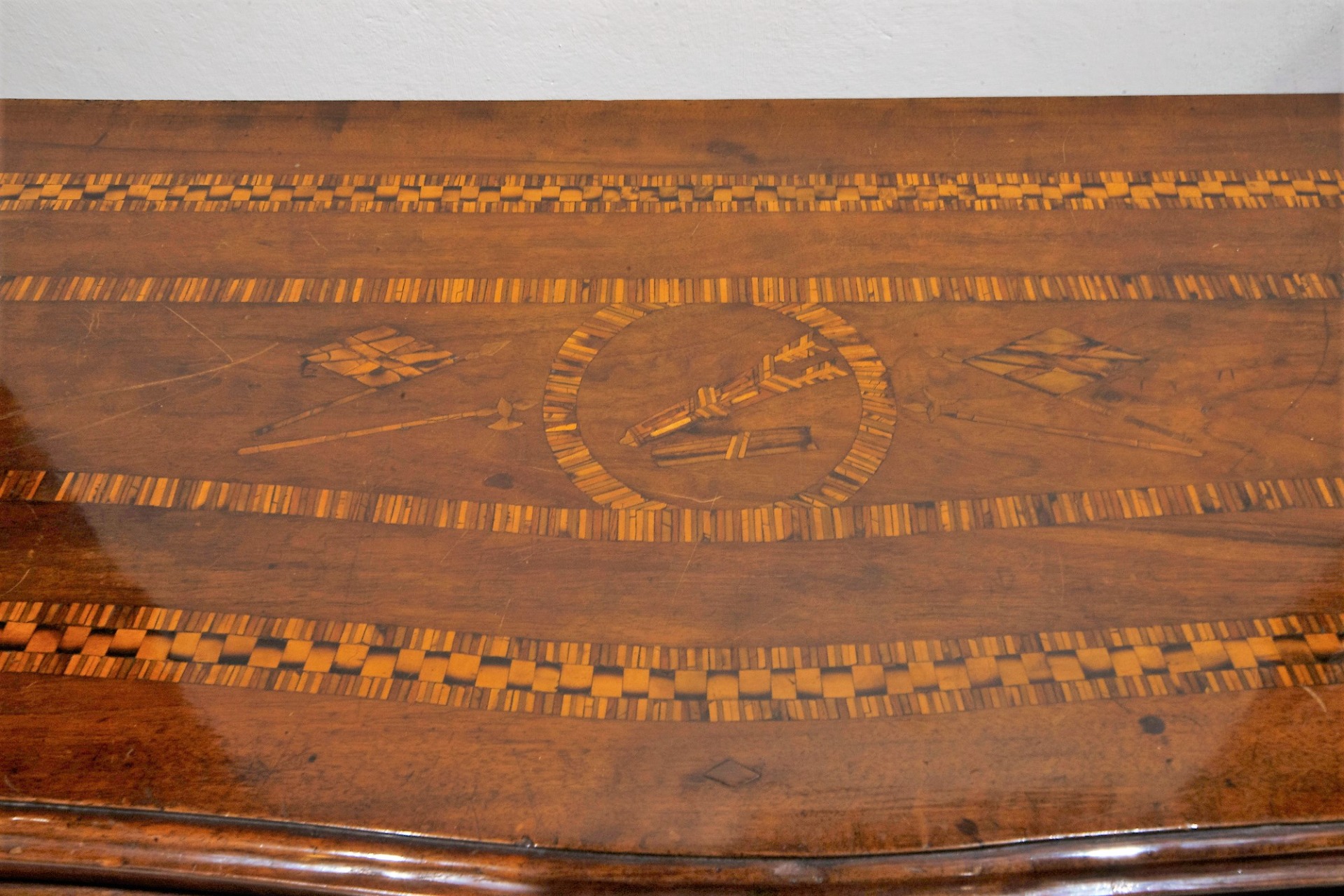 Piacenza chest of drawers with 2 drawers, carved and inlaid, curved on the front and sides - mid-18th century