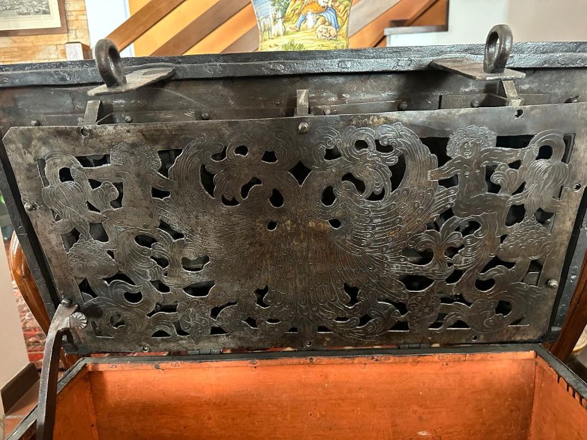 17th-century wrought iron chest, measures 78 x 44.5 cm, height 49 cm, of European origin