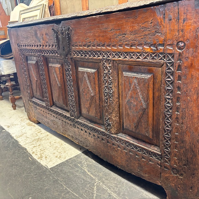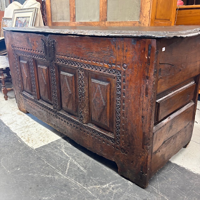 Antique 17th century oak chest. Carved. Dimensions 166 x 58 h 78 cm