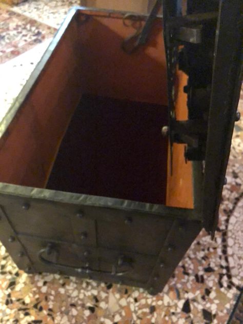 Cassapanca in ferro battuto del XVII secolo, misure 78 x 44,5 cm, altezza 49 cm, di origine europea