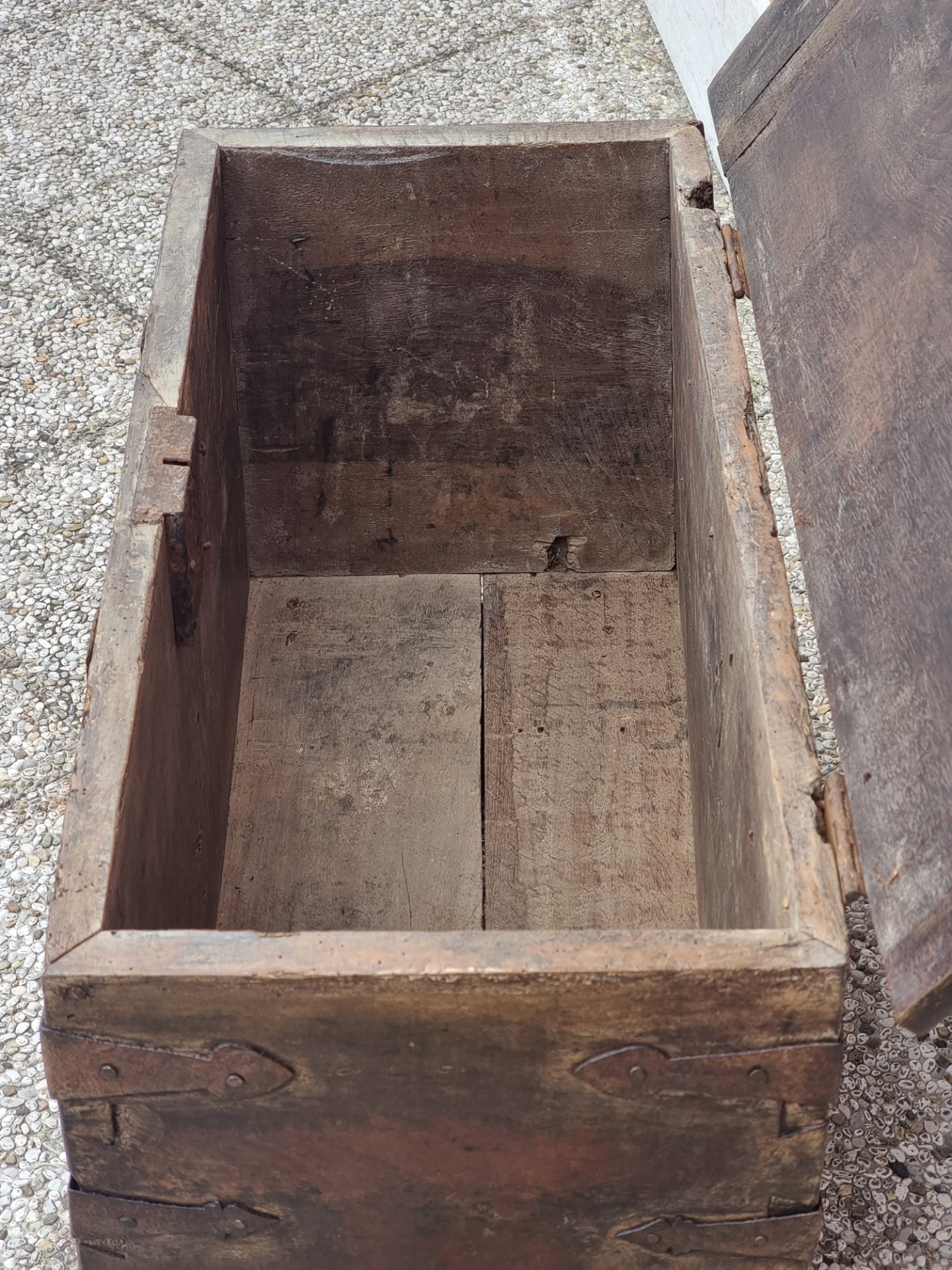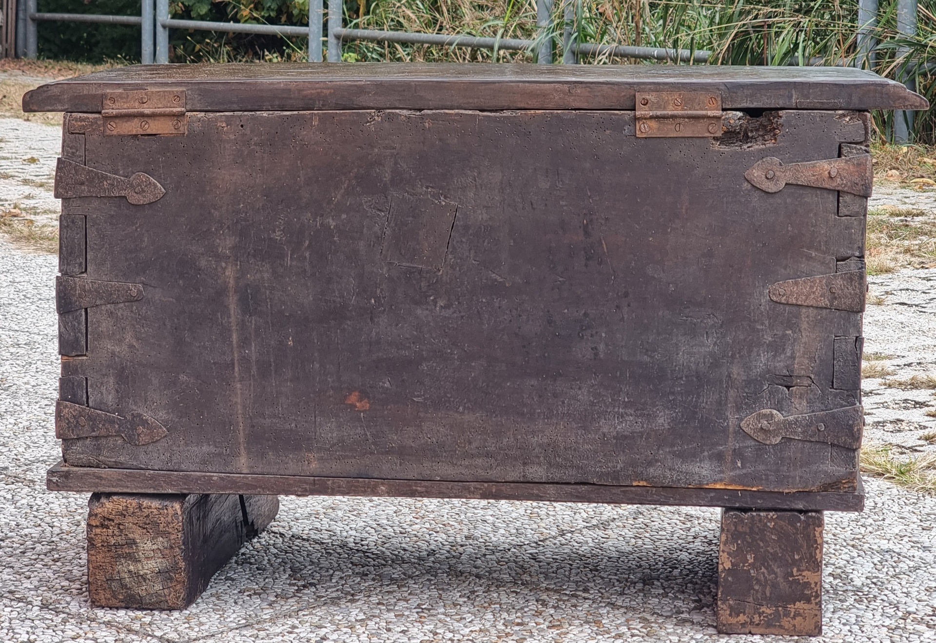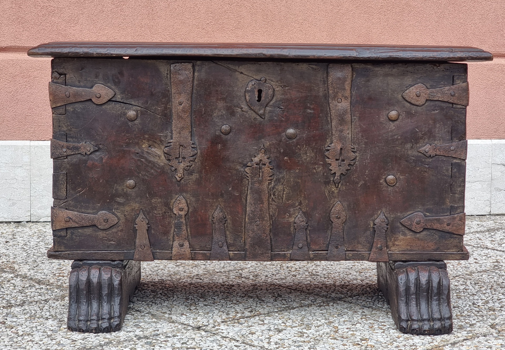 Cassa panca in noce con ferri battuti traforati a croce – Italia settentrionale, fine XVI – ini
