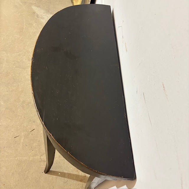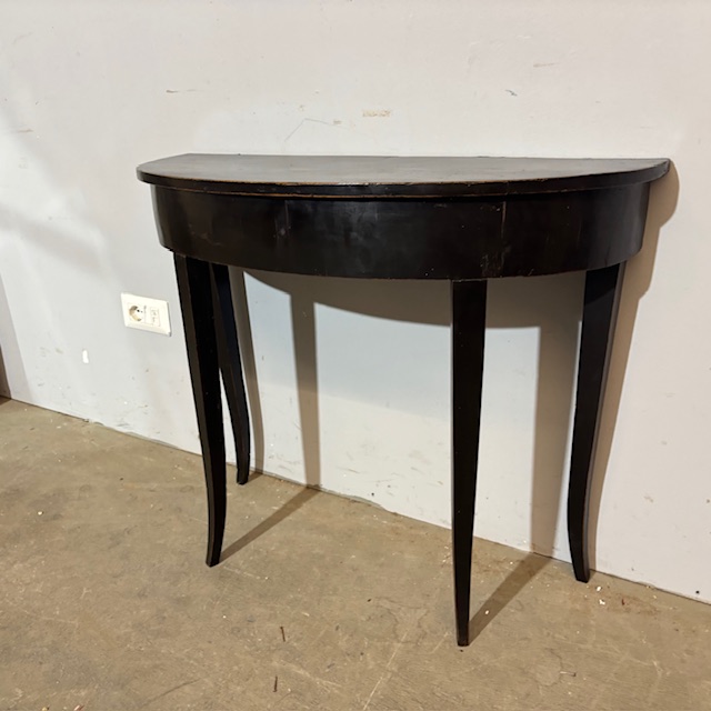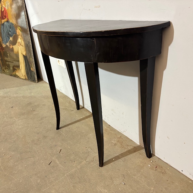 Antique Louis XVI half-moon console/table from the late 1700s, black lacquered, Siena. Measurements: 89 x 34 cm, height 71 cm.
