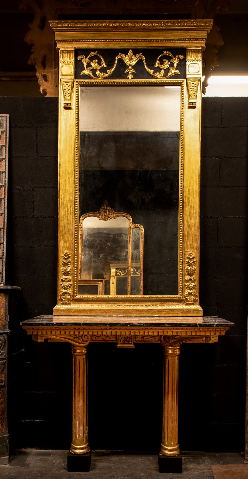 SPECC299 - Empire console with mirror in carved and gilded wood.