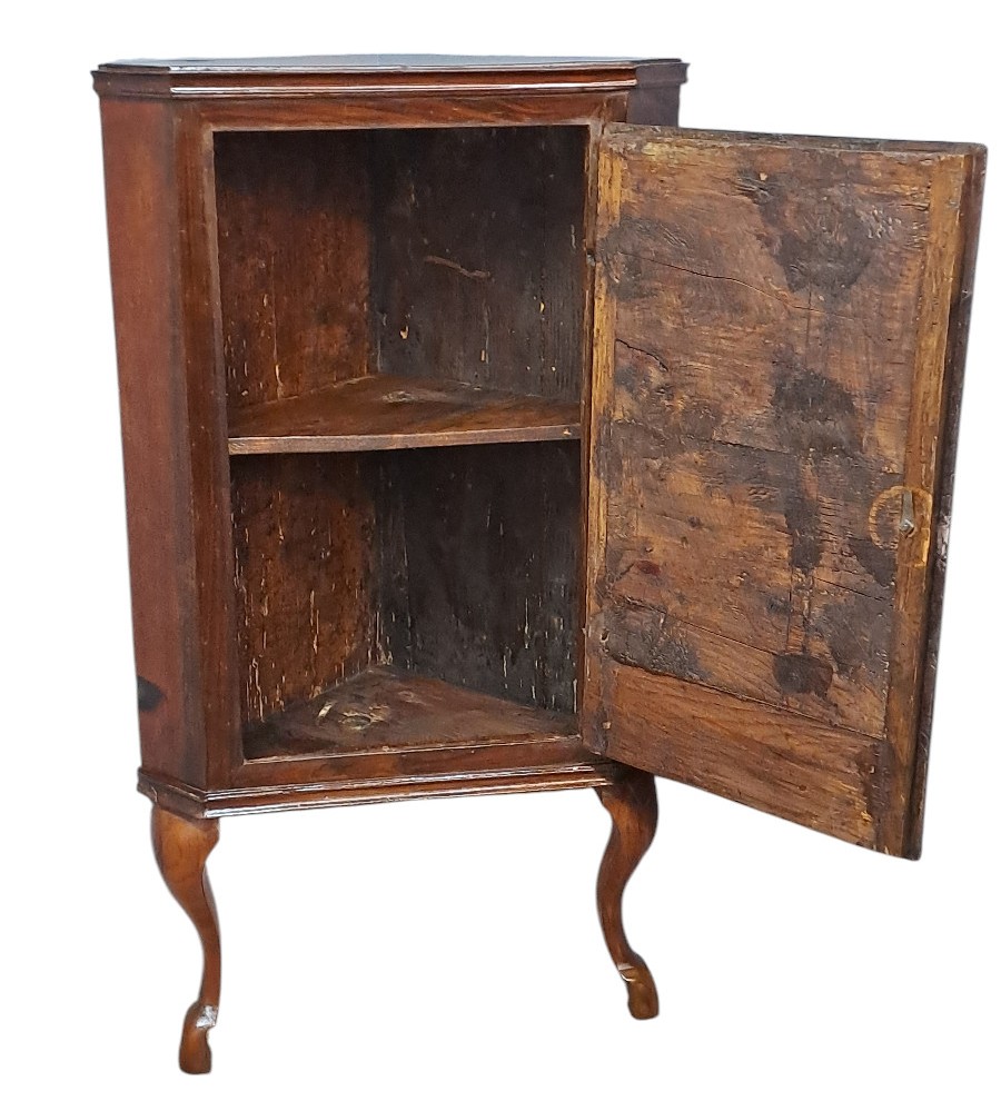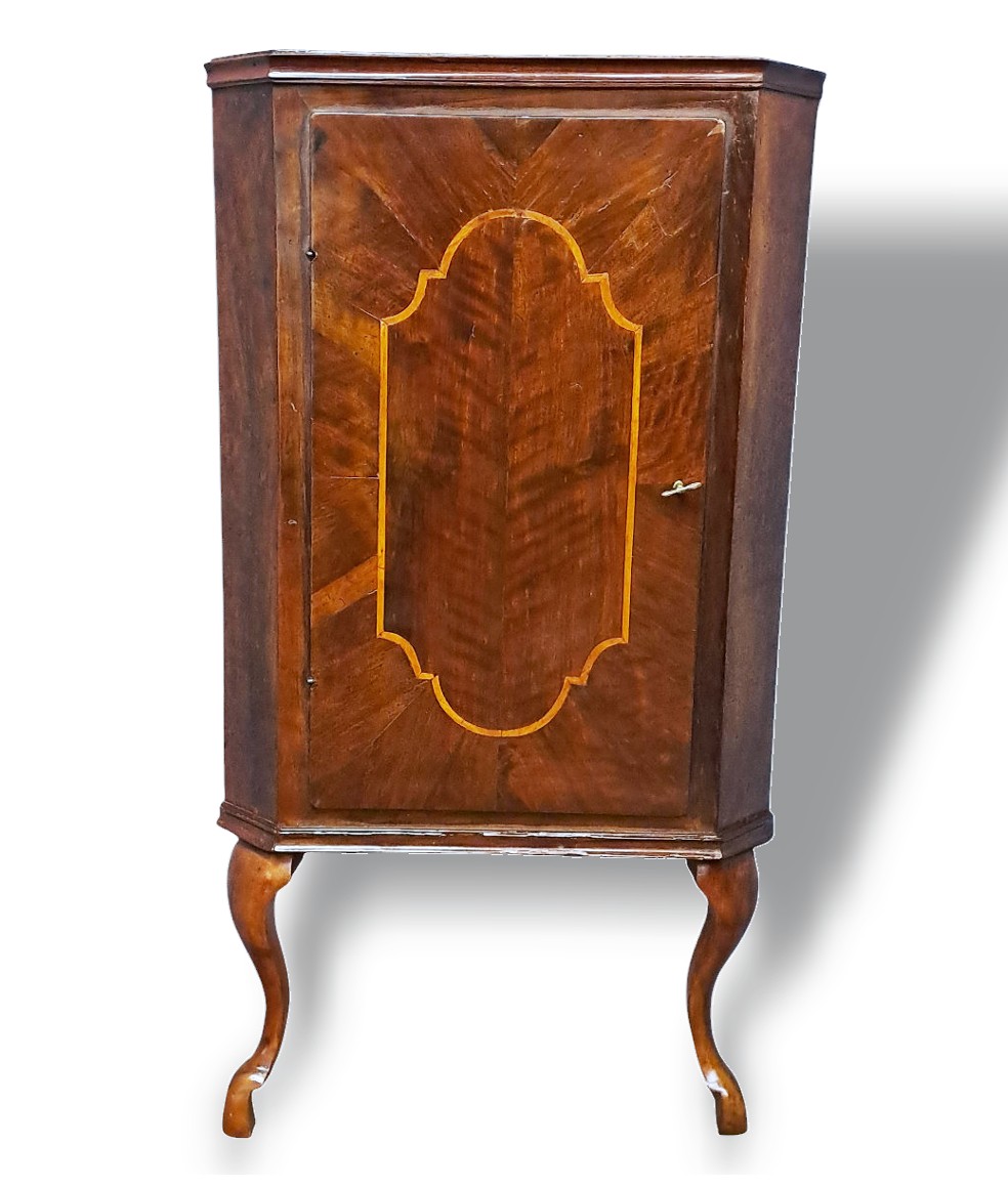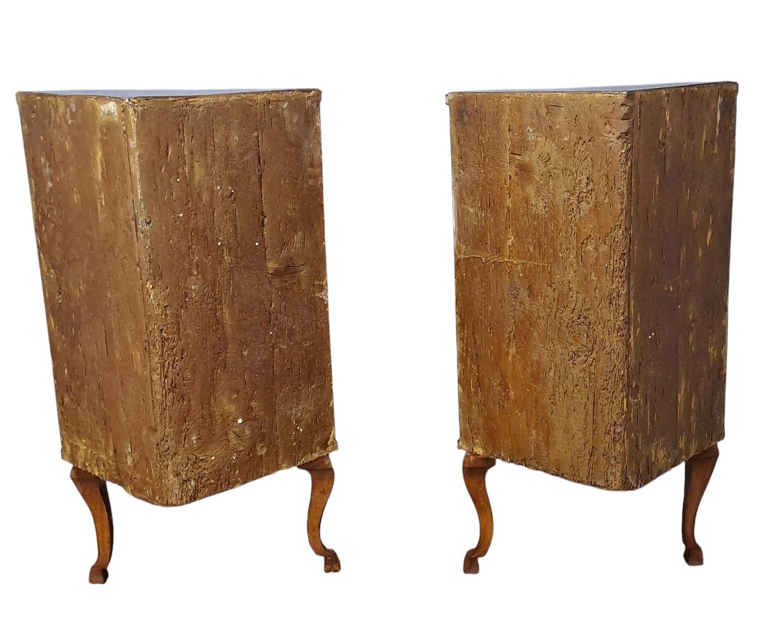 Description: Elegant pair of corner cabinets characterized by a refined cabinet making typical of the Louis XIV period in Ferrara. The body of the furniture has a pentagonal shape suitable to be placed in a corner of the room, optimizing the space.