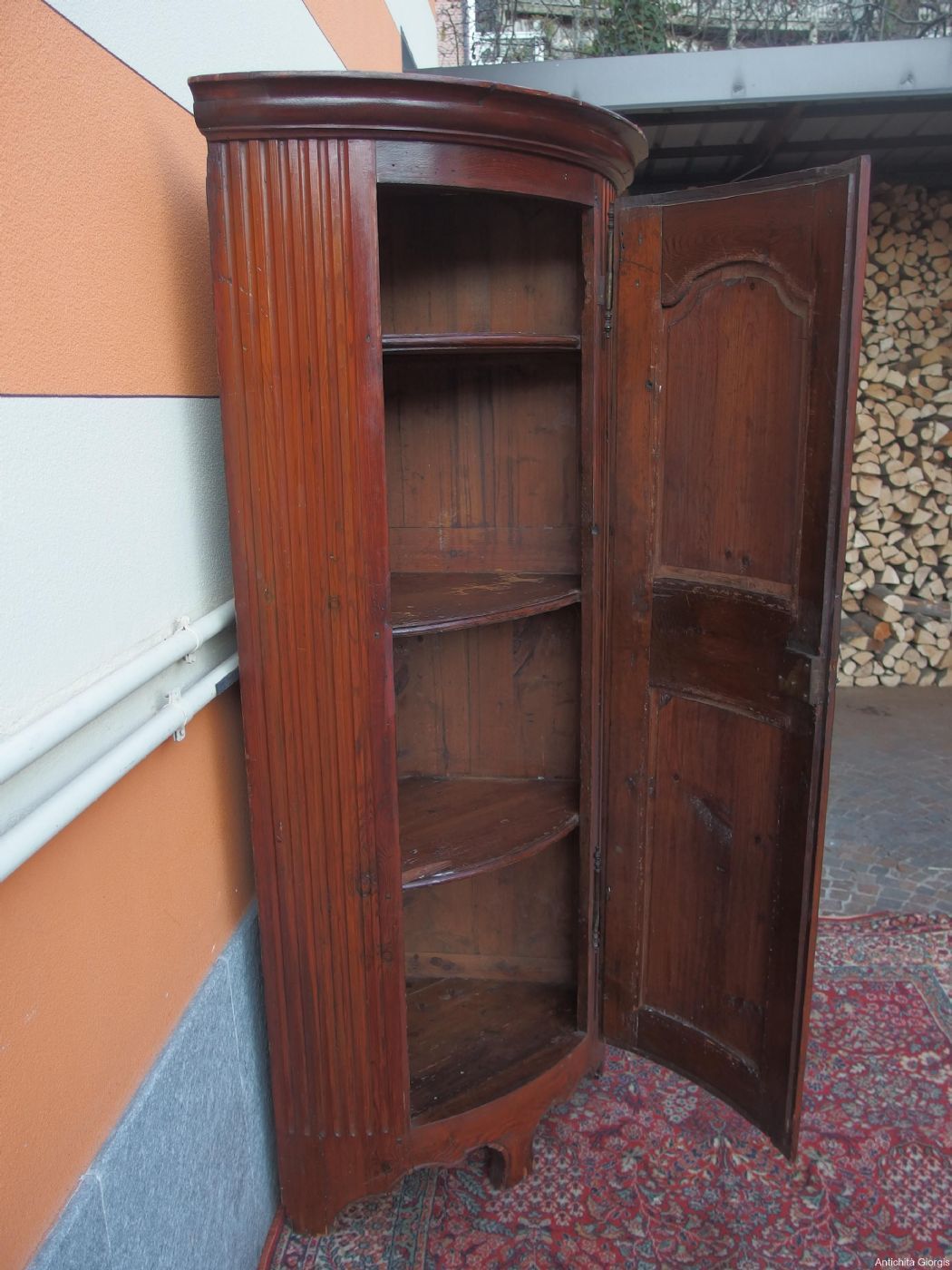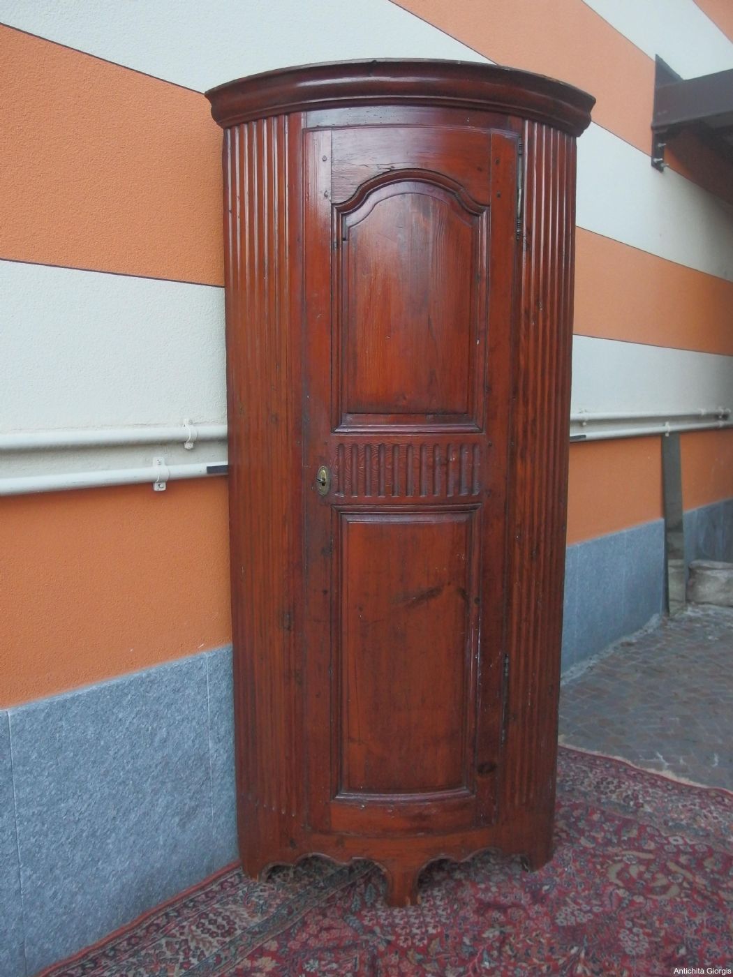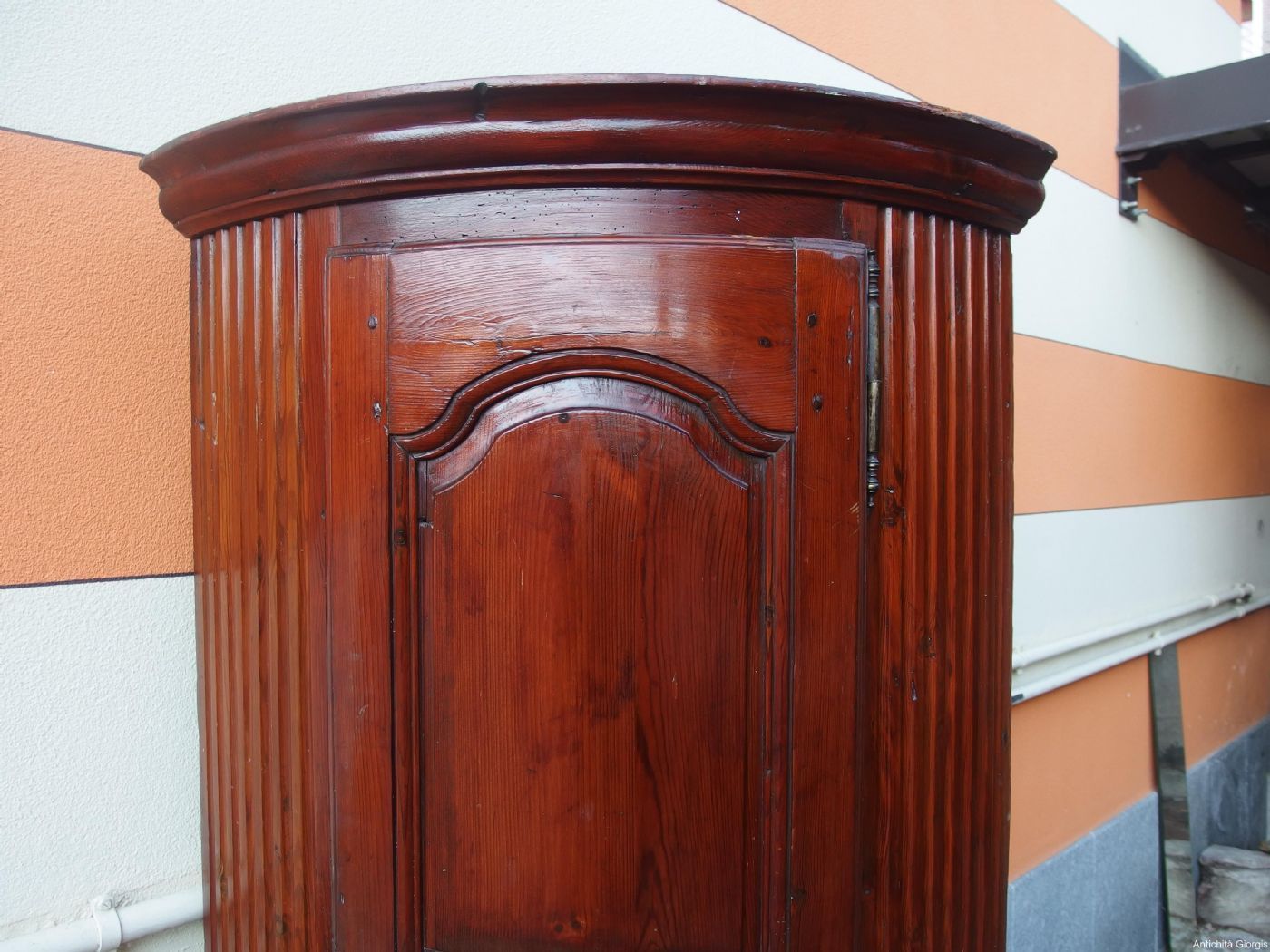 Beautiful corner cabinet in mountain pine wood (larch family) from the late 18th century, Louis XIV style, originating from Haute Savoie, France. The piece of furniture is completely original, the restoration is minimal (some filling and good waxing, SEE PHOTOS). The peculiarity of the piece of furniture is its soft and elegant line which, considering its size, makes it remain a piece of furniture that is not visually heavy, suitable for all types of environments. Dimensions: cm L 90 x D side 59 x H 190